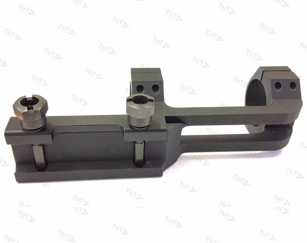 Моноблочный кронштейн для установки оптических прицелов с диаметром центральной трубки 30 мм (основной размер) и 1 дюйм (в комплект входят металлические вставки-переходники) на оружие, оснащенное планкой Weaver.