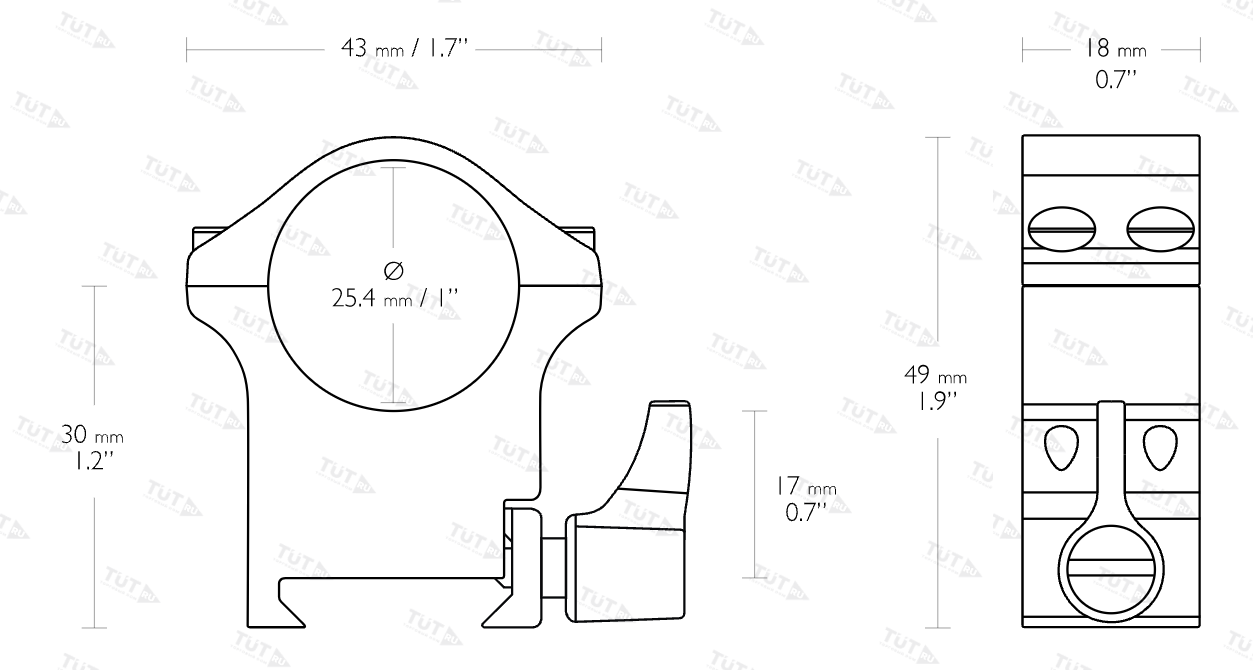 Комплект рассчитан для установки оптического прицела с 25.4 мм трубой без собственного крепления на огнестрельное/пневматическое оружие с верхней планкой Weaver/Picatinny.