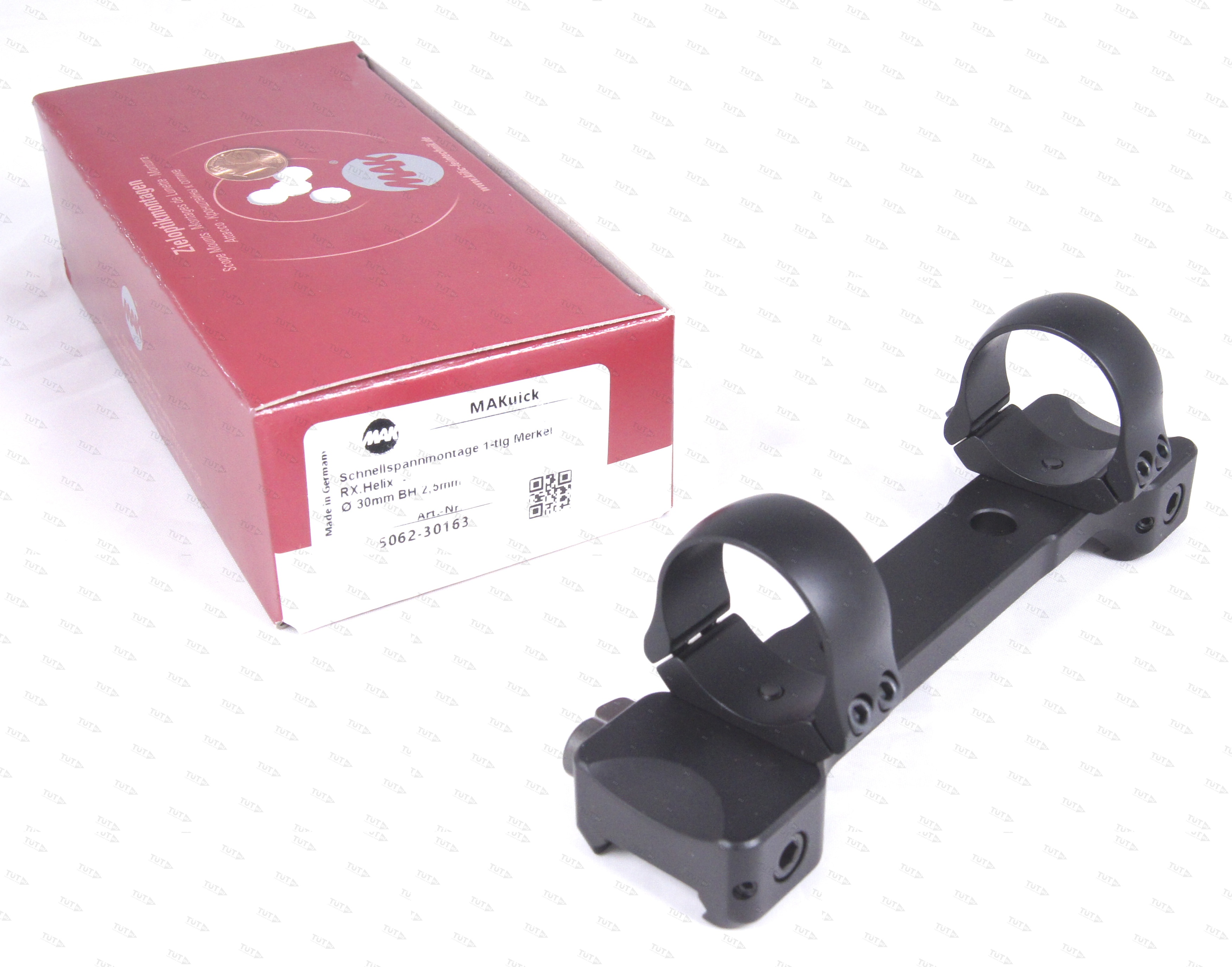 Быстросъемный моноблок фирмы MAK для установки оптических прицелов с диаметром центральной трубки 30 мм на фирменные основания карабина Merkel RX Helix.