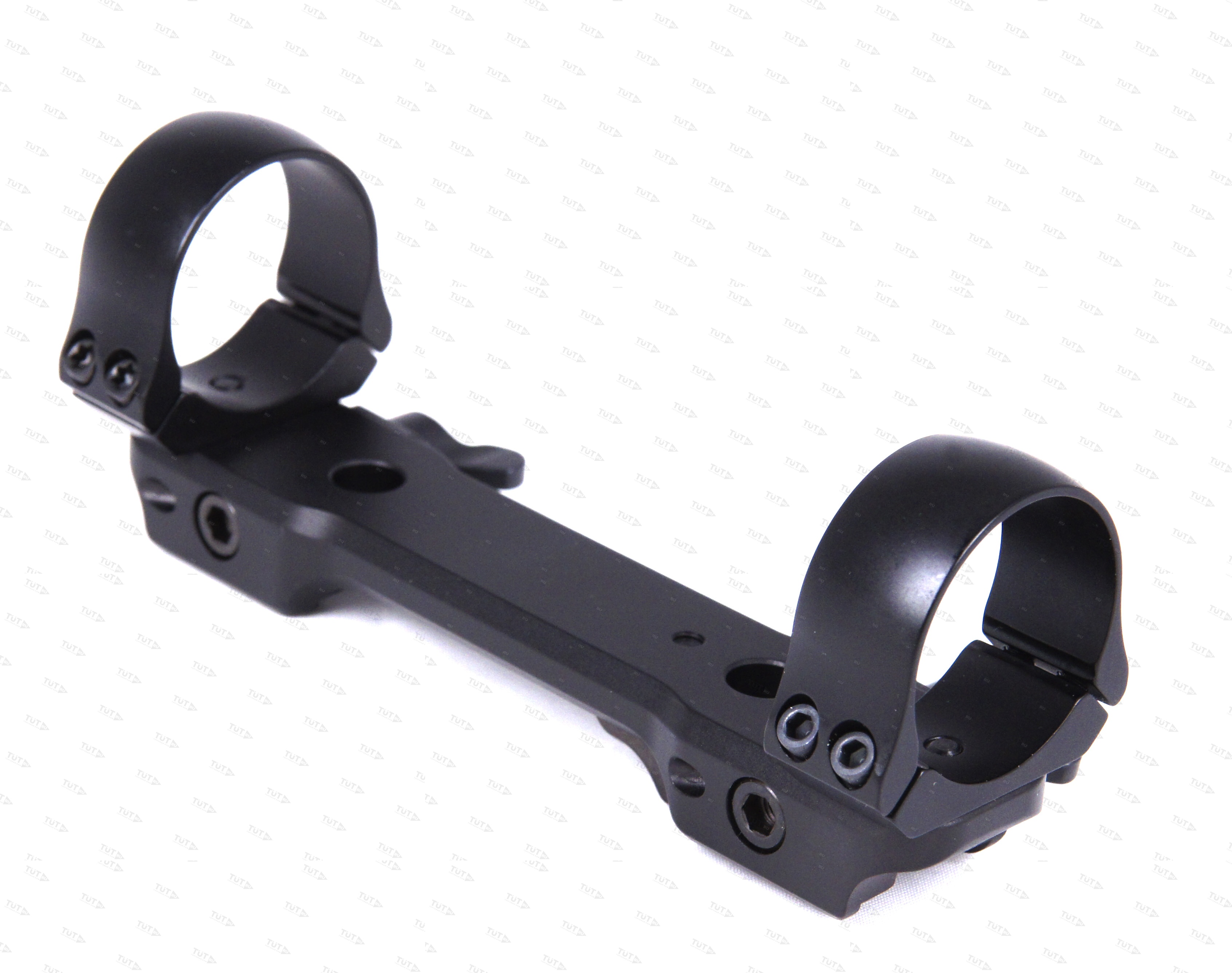 На данное основание так же могут быть смонтированы кольца другого диаметра и высоты, а так же другие элементы, что значительно расширяет возможности кронштейна при "апгрейде" Вашего карабина.