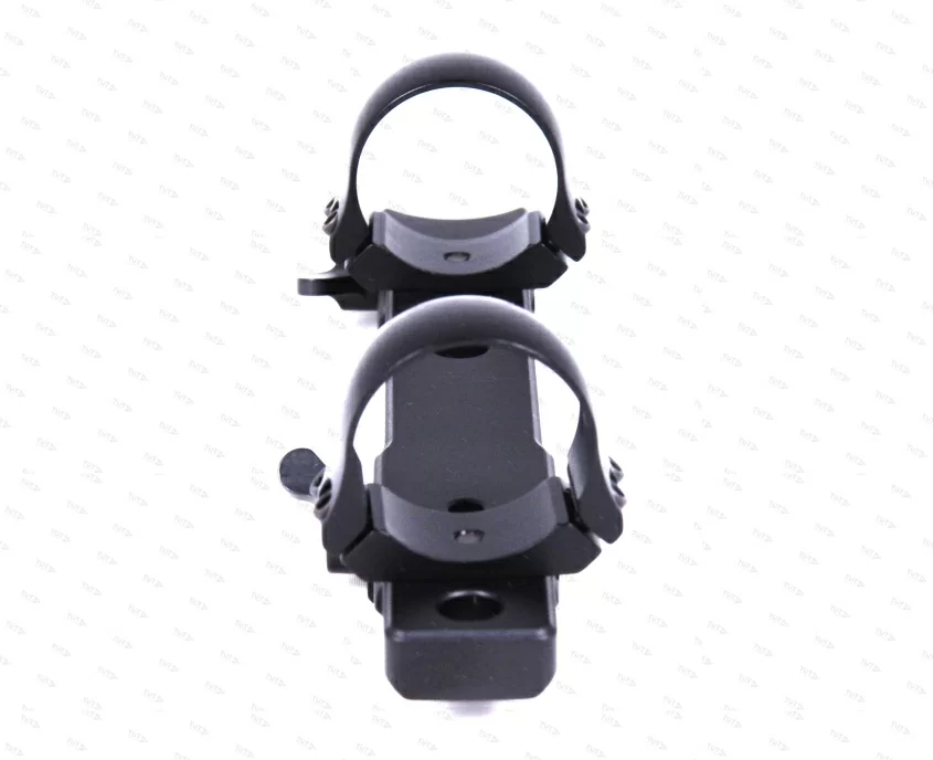 Кронштейн состоит из цельнофрезерованного основания и верхней части — колец с диаметром 30 мм. Верхние элементы съёмные. При необходимости их можно заменить.