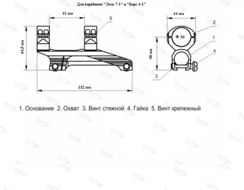 КронштейнЛось30 мм / ЭСТ используется для установки оптических прицелов на гладкоствольное и нарезное оружие, оснащенное верхней оружейной базой «ласточкин хвост» (длина от 135 мм) – специализированы для карабинов «Барс 4-1», «Лось 7-1». Высота крепления оптического прицела – 47,5 мм (до оси оптики), поэтому оптическая ось прицела находится выше прицельной мушки и обеспечивает полноценный обзор. При этом строение кронштейна таково, что прицеливаться можно и через мушку на стволе (удобно при стрельбе на короткие дистанции).