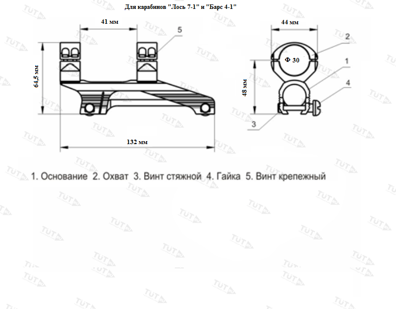 Основные технические характеристики крепления Лось 30 мм / ЭСТ