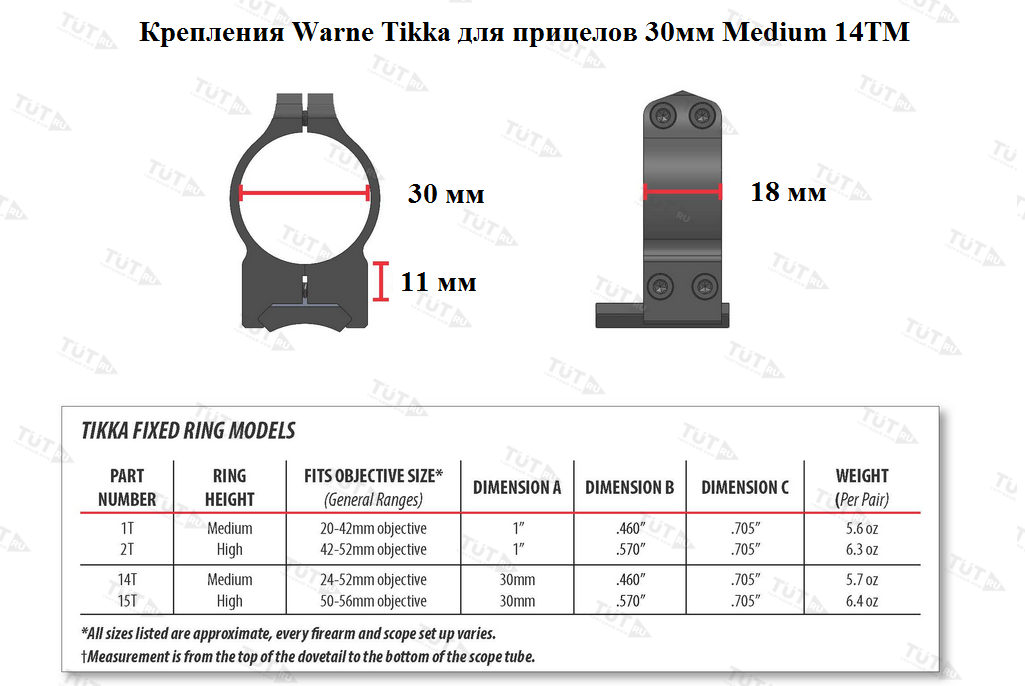 - Крепление Warne Tikka 30 mm Medium 14TM – 2 шт.