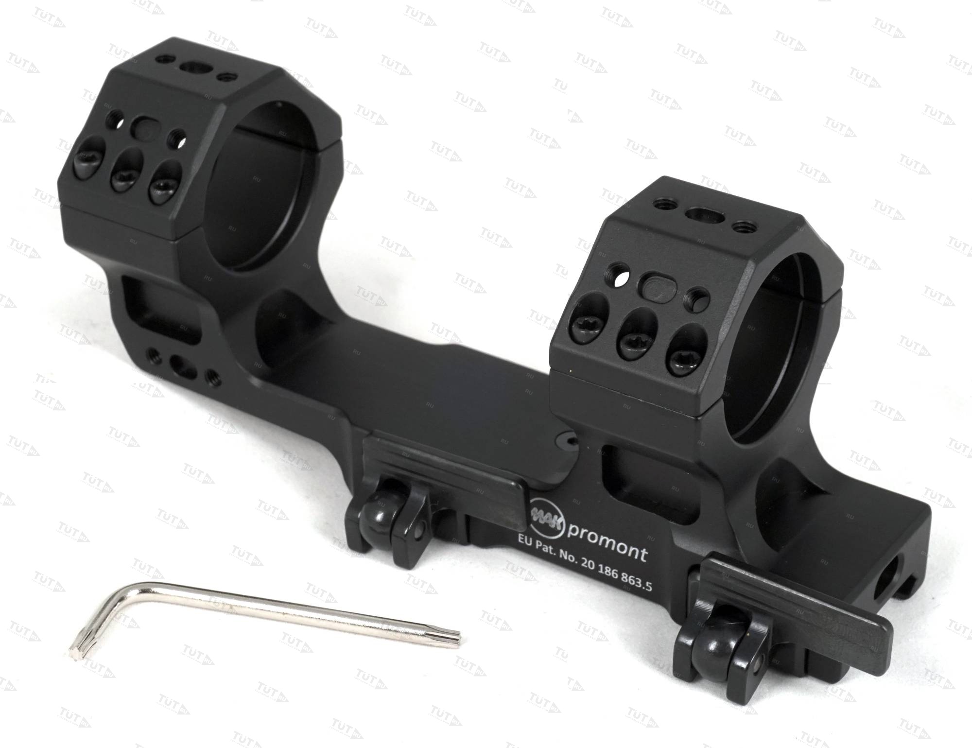 Запатентованное моноблочное быстросъемное крепление MAKpromont с самоблокирующимся рычажным замком для направляющих Picatinny.