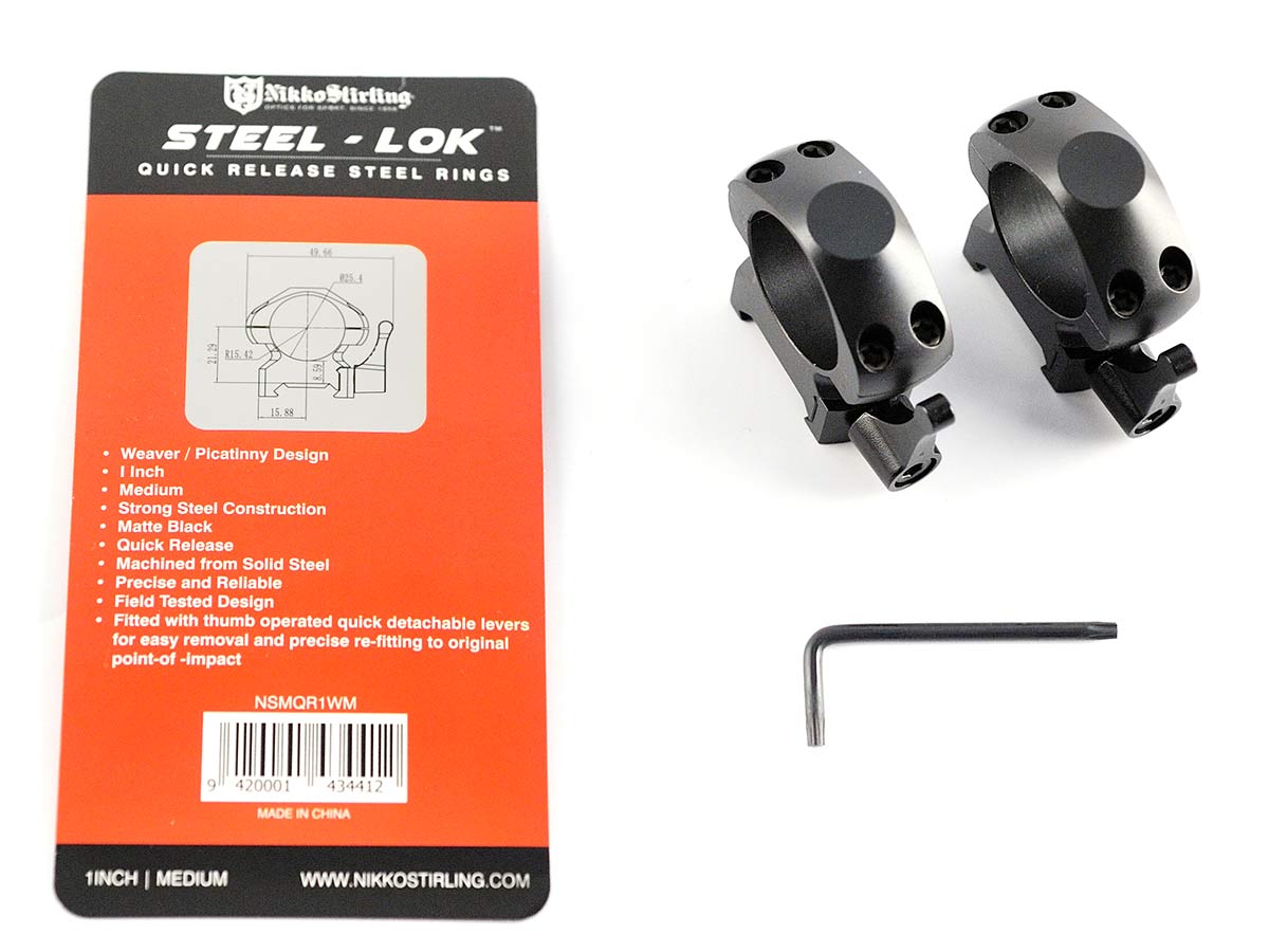 Кольца быстросъемные Nikko Stirling стальные D25,4мм, Weaver, средние