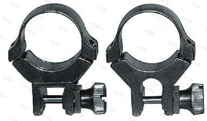 Раздельные, регулируемые стальные кольца Apel для установки оптических прицелов с дюймовых диаметром центральной трубки на 11-мм призму.