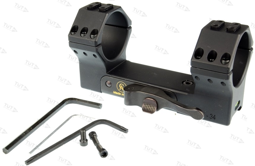 Кронштейн имеет фирменный рычажный прижимной элемент из стали. Тело моноблока изготовлено из алюминиевого сплава Т7075.