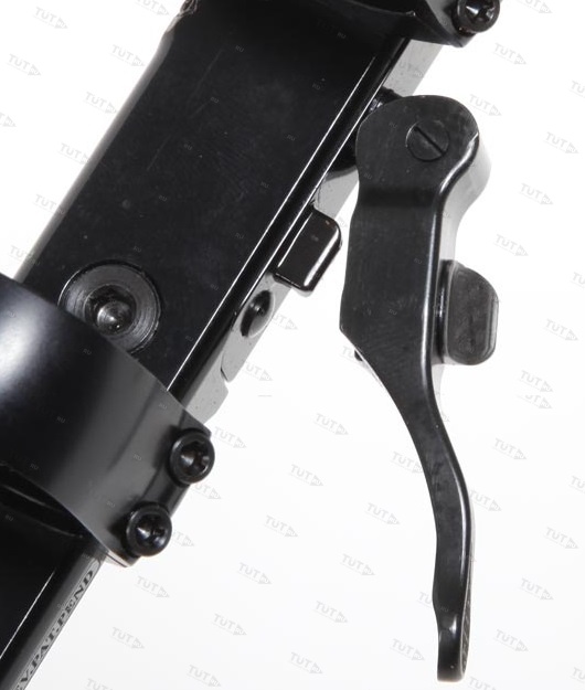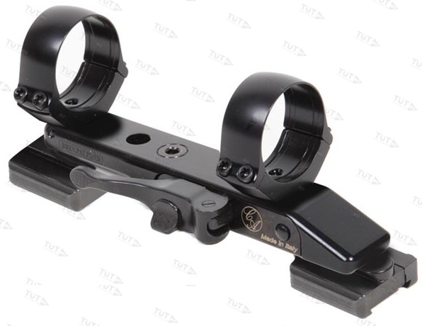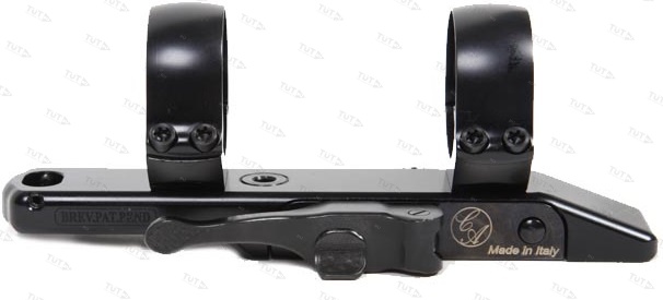 Быстросъемный кронштейн с кольцами, диаметром 26 мм, высота колец (BH) = 7,5 мм  для установки на 12 мм призму. Стальной чёрный кронштейн. Запорный рычажный механизм, авторский от компании Contessa . Основание украшено фирменной гравировкой.