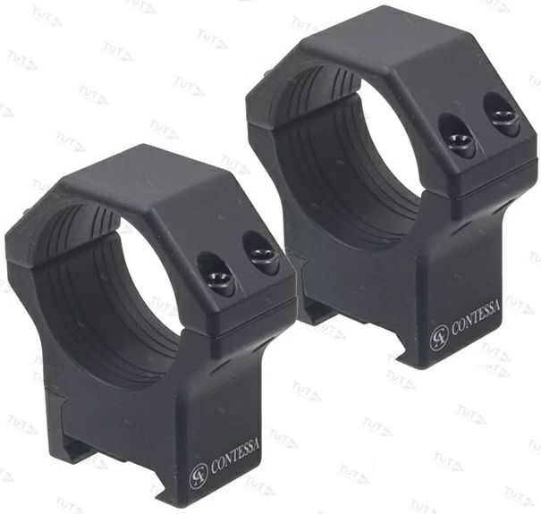 Комплект небыстроъемных колец Contessa на базу Picatinny, для установки оптических прицелов с 34 мм диаметром центральной трубки, высота -12 мм (до основания кольца)