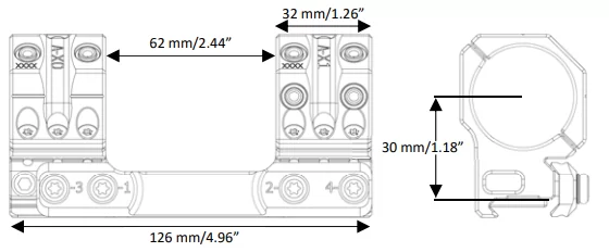 Тактический кронштейн SPUHR D30мм для установки на Picatinny, H30мм, без наклона (SP-3001)