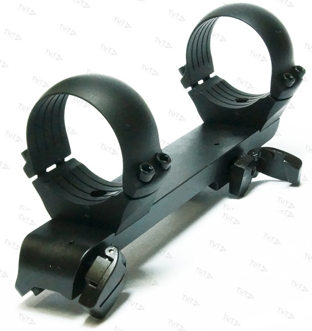 Кронштейн состоит из основания высотой в 11 мм из легированной стали и съемных колец из авиационного алюминия. При расчете Высоты колец необходимо иметь в виду, что основание имеет углубление в 1.5 мм.