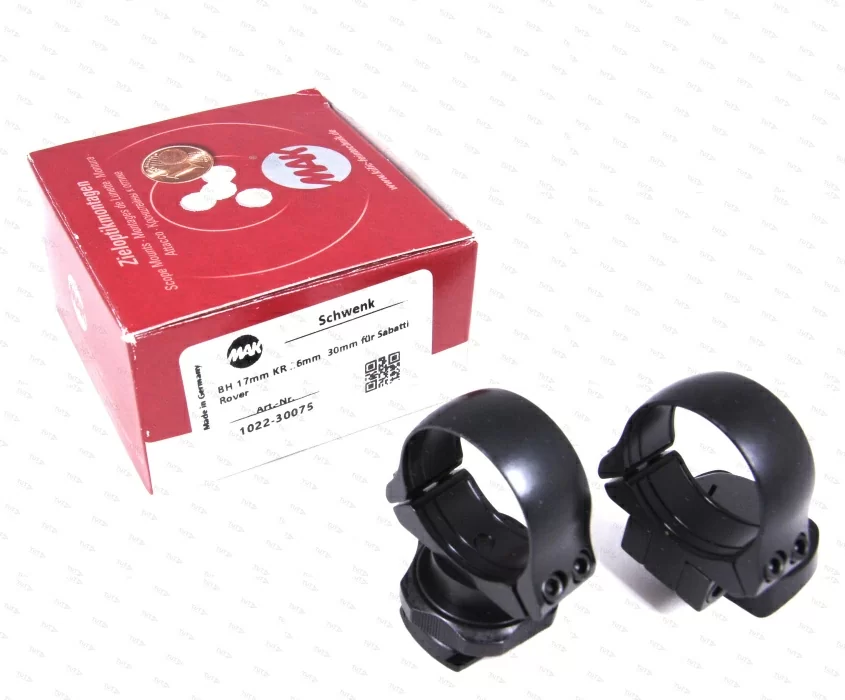 Крепление MAK на Sabatti Rover (1022-30075) представляет собой поворотный кронштейн на раздельных основаниях, предназначенный для установки дневных оптических прицелов с диаметром трубы 30 мм. Высота от ствольной коробки до нижней части трубы прицела 17 мм обеспечивает возможность установки мощной оптики с диаметром объектива до 60 мм. Кронштейны системы MAKschwenk созданы для быстрого снятия и установки прицелов на соответствующее оружие, не требуют повторной пристрелки. Это универсальное решение может быть использовано для использования нескольких прицельных приспособлений на одном карабине. Прицел крепиться в охват центральной трубы и надежно фиксируется двумя винтами TORX на каждом кольце. Все элементы крепления изготовлены из стали.