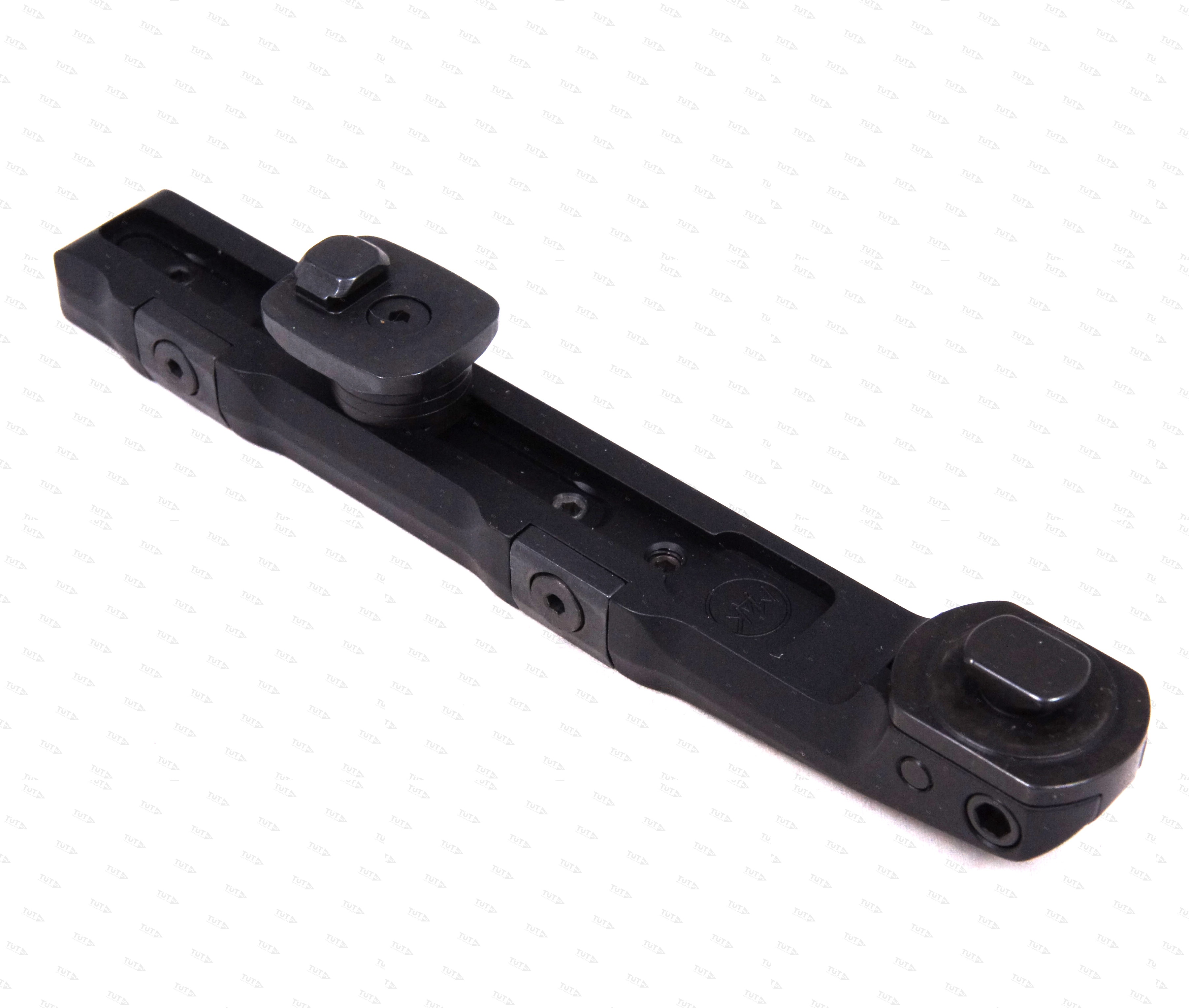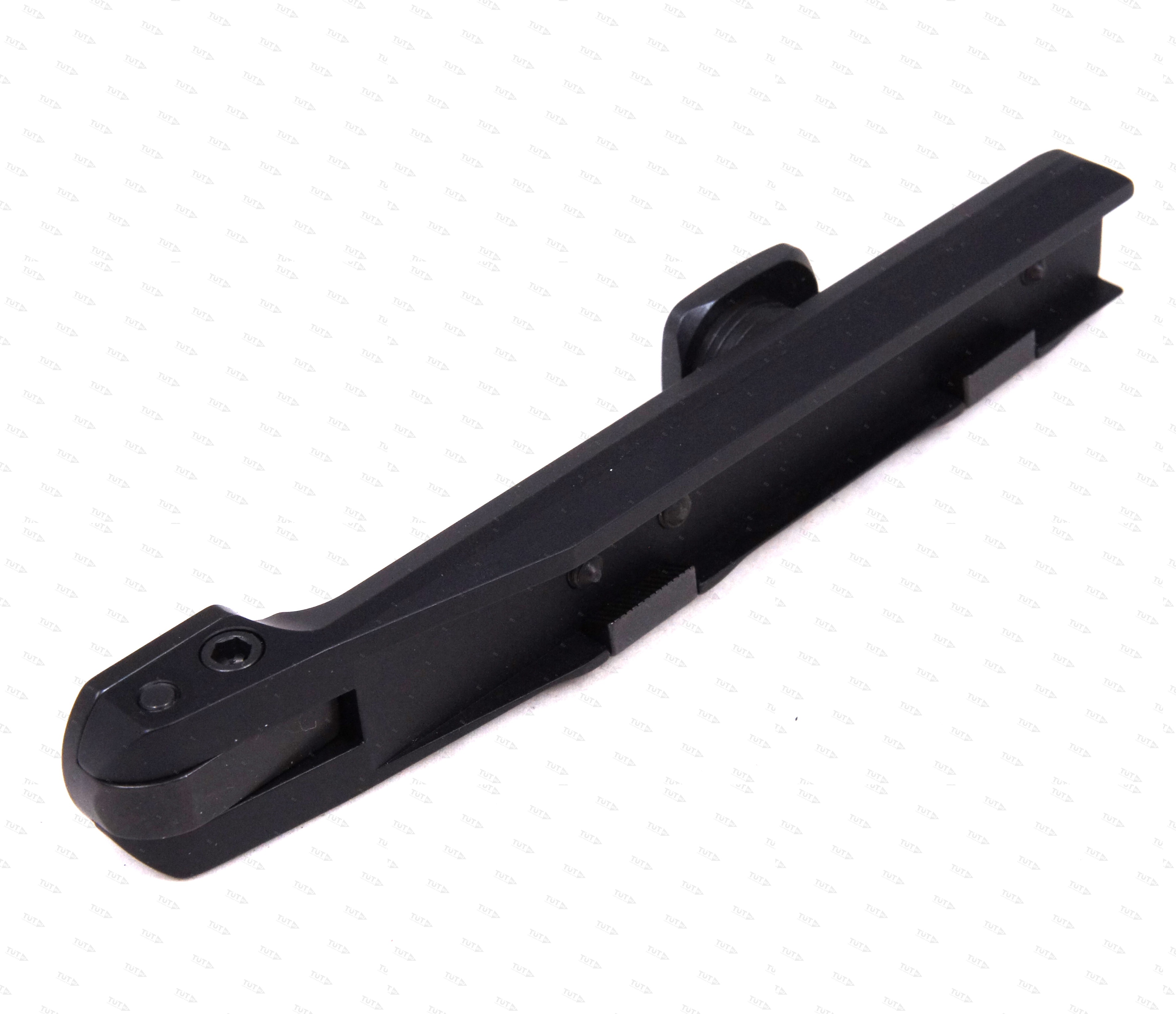 Задняя опора кронштейна может быть легко отрегулирована на любое расстояние между базами и её высота подогнана под нужную высоту для обеспечения соосности верхней плоскости базы и оси канала ствола Вашего оружия (у разных моделей оружия даже одного производителя высоты баз и расстояние между ними не совпадают!).