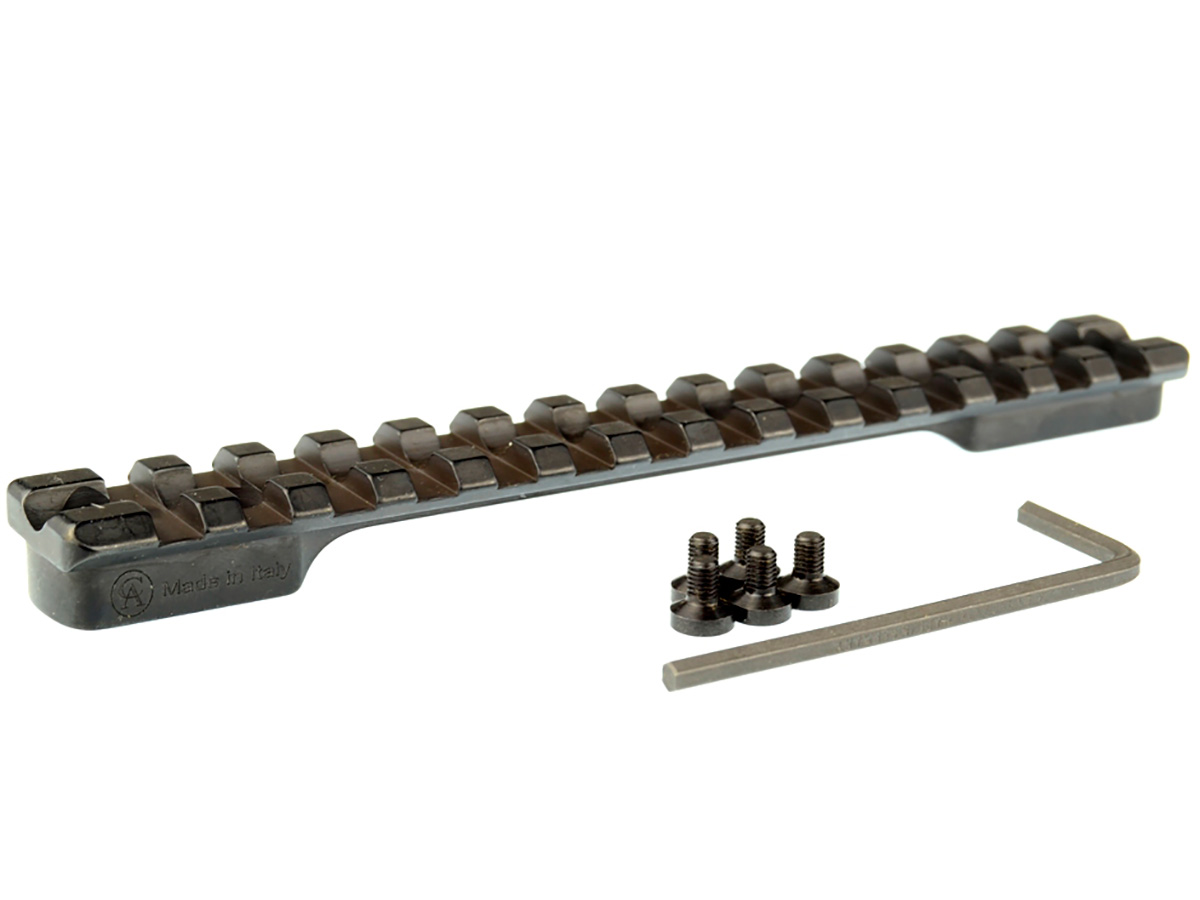 Стальная планка Picatinny для установки на ствольную коробку карабинов Sabatti Rover 870 Long Action с удлиненным профилем (вынос на стрелка). Основание подойдет для комфортной установки оптики, требующей небольшого удаления глаза стрелка от окуляра (например, предобъективный ночной монокуляр).