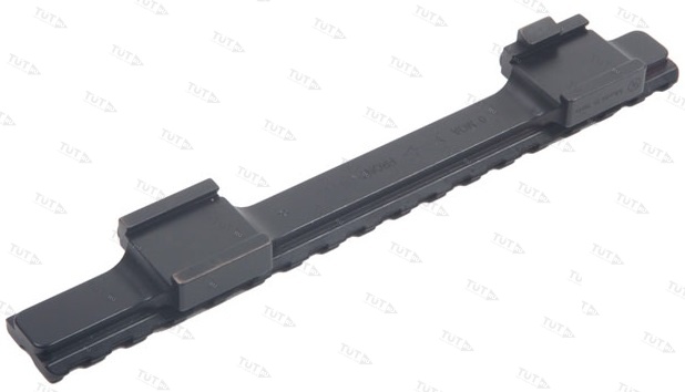 Стальное основание (планка) Picatinny для установки на 19 мм фрезерованные основания ствольной коробки карабинов CZ-550/CZ-557 Magnum (кал. .416 Rigby / .375 H&H). Планка имеет центральную проточку, но при этом не подходит для работы с открытым прицелом, так как общая высота вместе с родными базами CZ перекрывает мушку карабина. Планка без наклона.