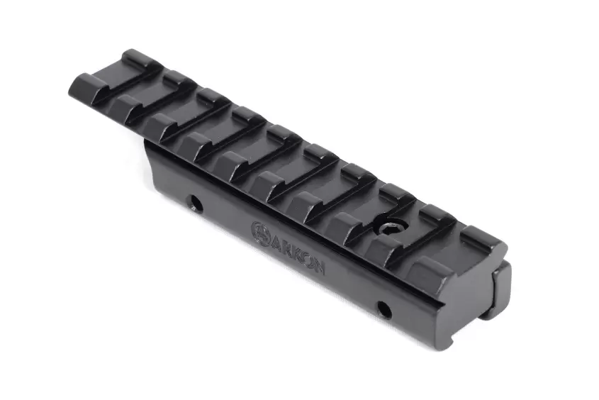 Моноконструкция переходной планки Arkon W/Л выполнена из сверхпрочных марок авиационного алюминия на ЧПУ станках. Прецизионная обработка обеспечивает идеальную повторяемость сопрягающихся частей и полностью исключает любого рода люфты. Затяжные винты изготовлены из стали. Данная планка гарантировано обеспечит неподвижное положение прицельных приспособлений под интенсивными ударными нагрузками. Анодированное покрытие надежно защищает поверхности от образования царапин и сколов, также оно не бликует на солнце. Длина посадочной части планки Weaver – 99 мм.
