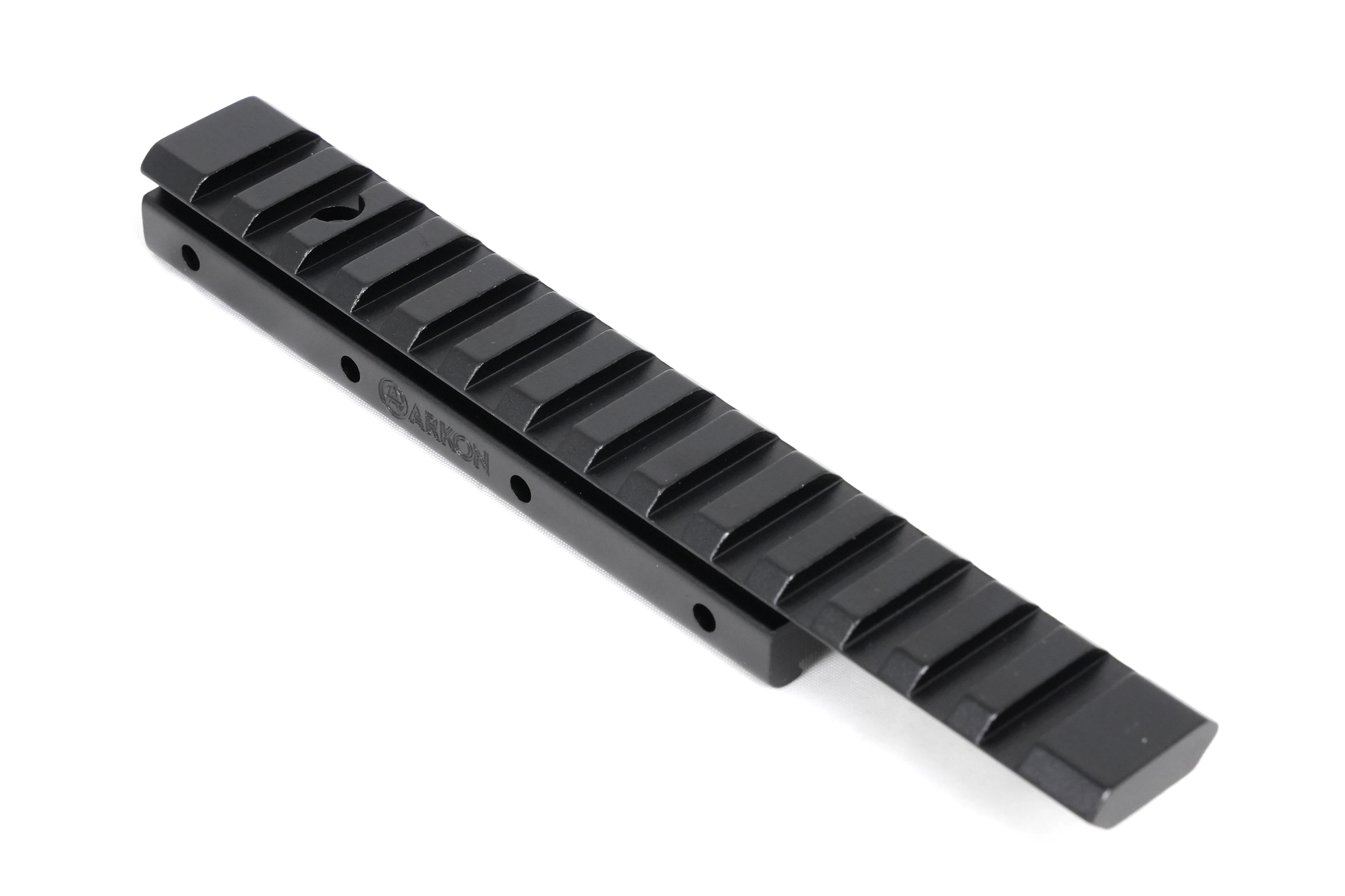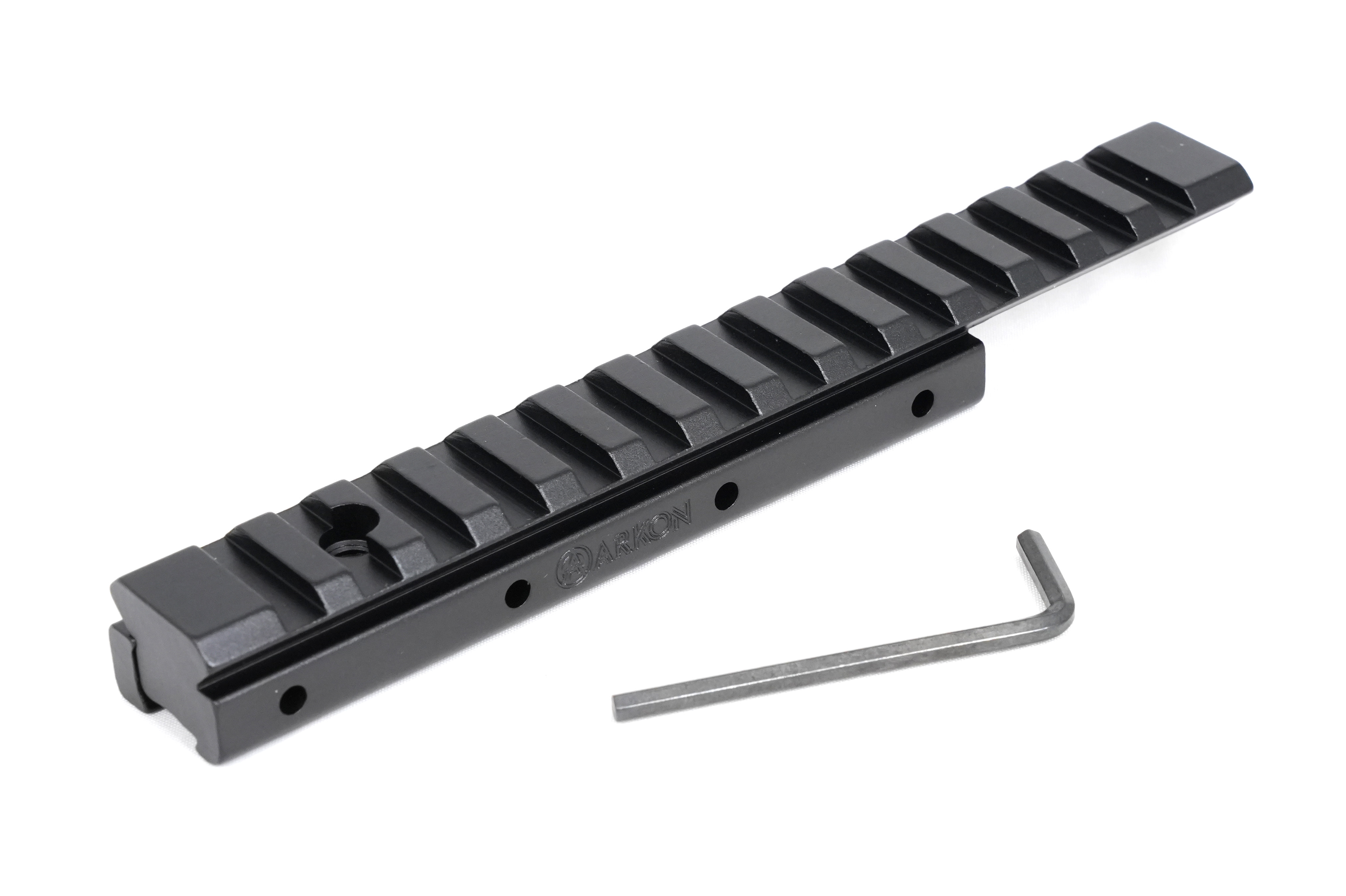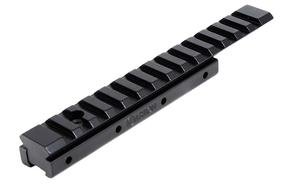 Монолитная конструкция переходной планки Arkon W/Л изготовлена из авиационного алюминия высокой прочности с использованием ЧПУ-станков, что обеспечивает идеальную точность и полное отсутствие люфтов между сопрягающимися частями. Затяжные винты выполнены из термообработанной стали, что гарантирует надежную фиксацию прицела даже под сильными ударными нагрузками. Анодированное покрытие защищает планку от царапин и сколов, а также предотвращает блики на солнце. Длина посадочной части Weaver составляет 157 мм.