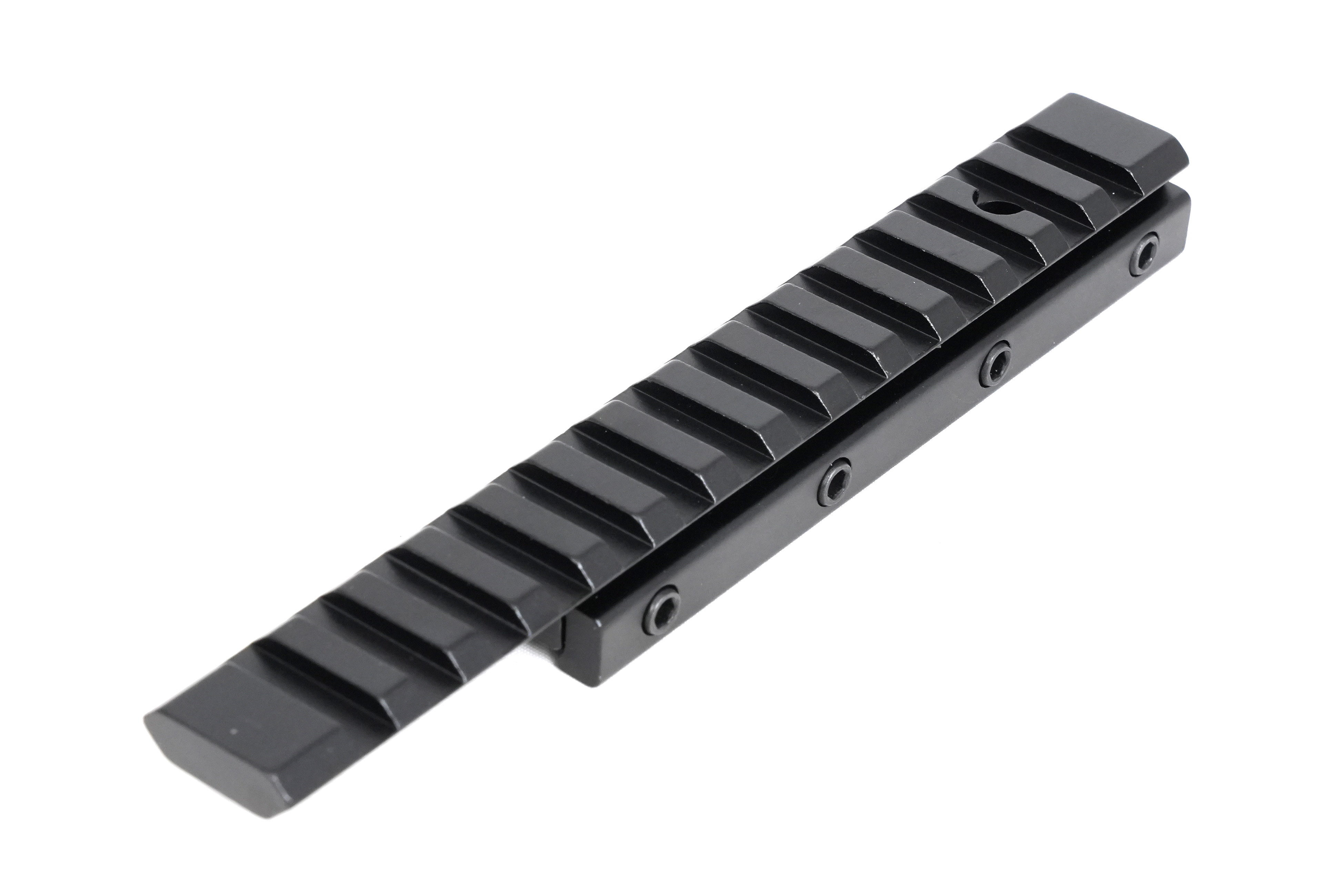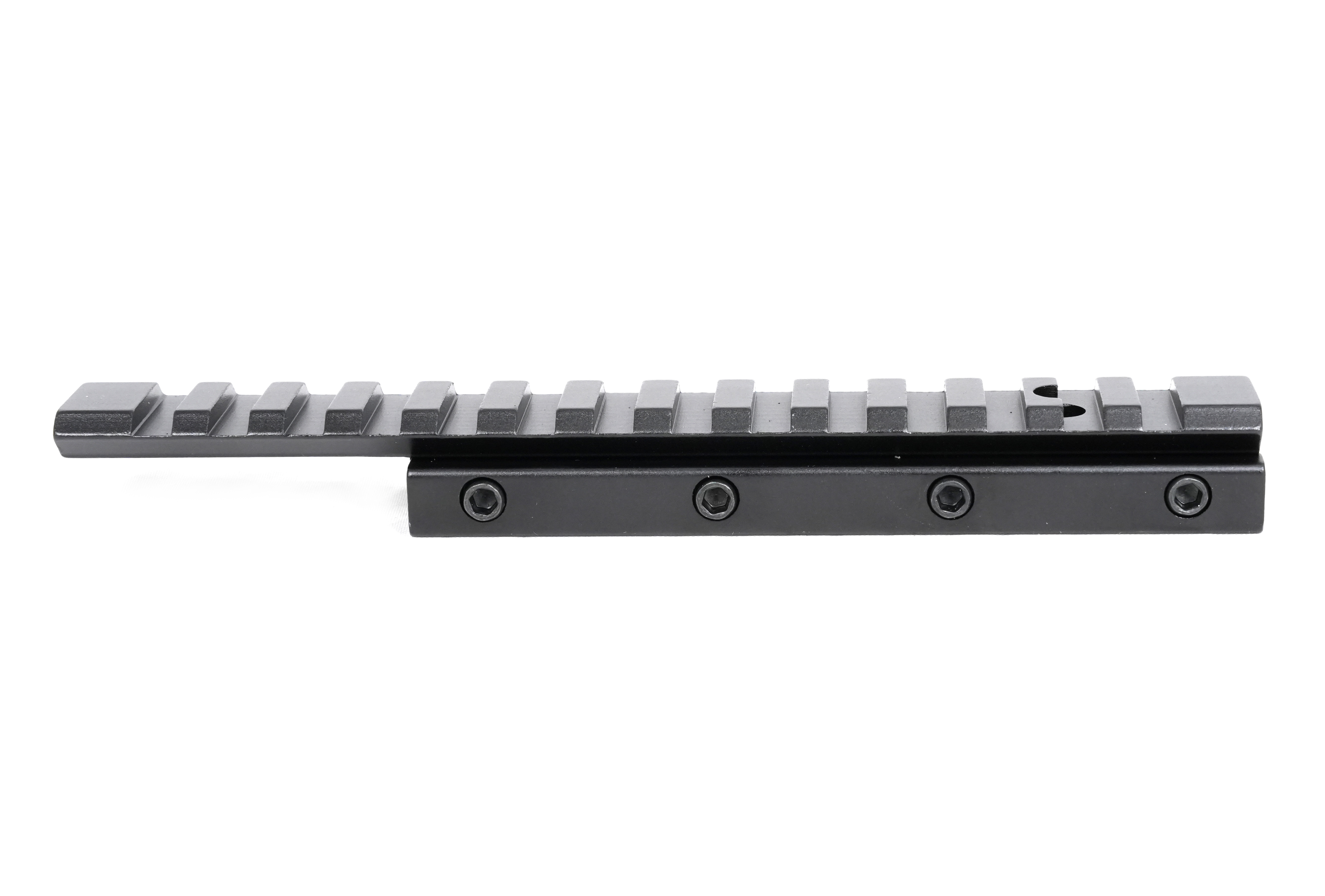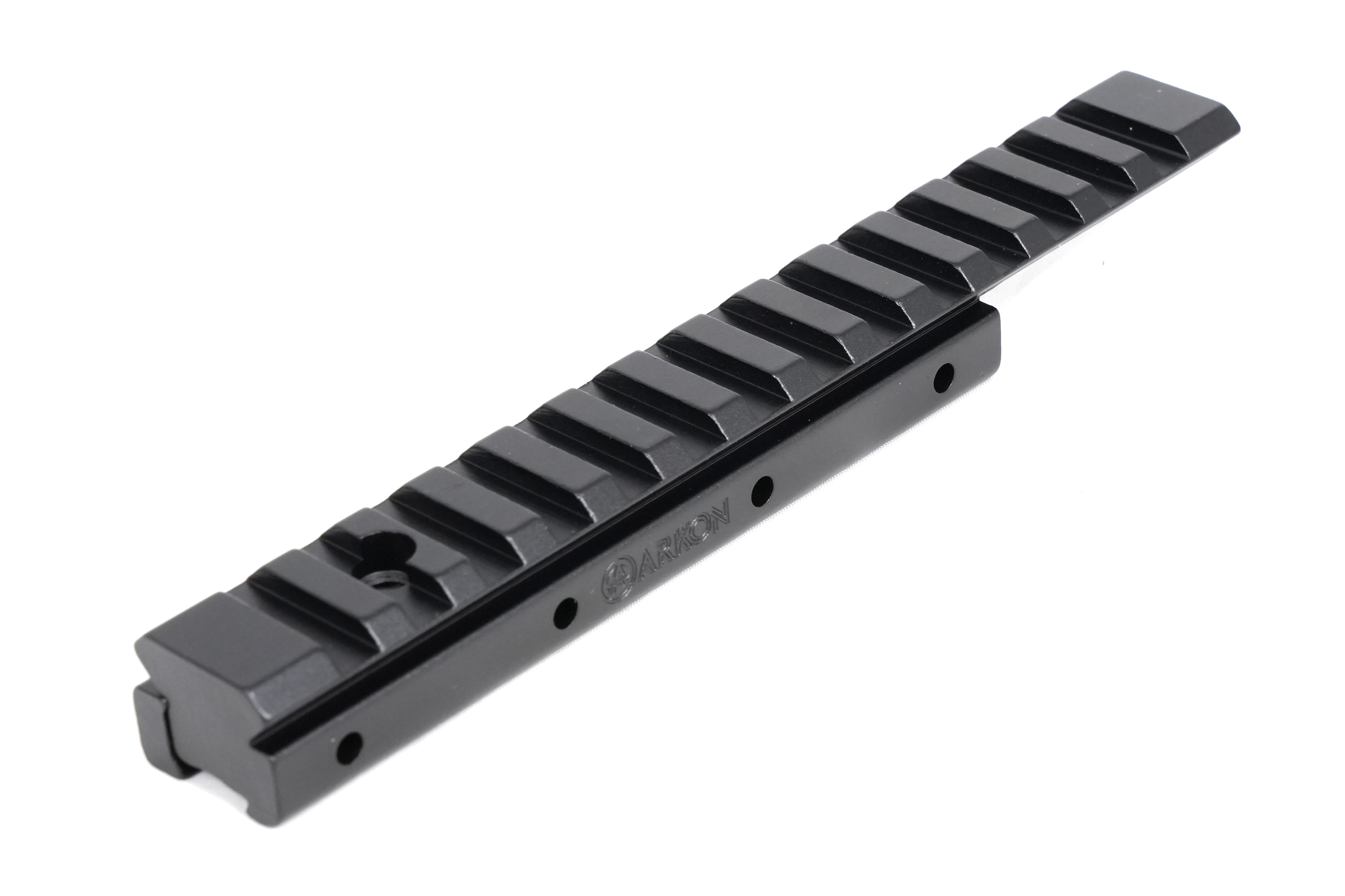 Монолитная конструкция переходной планки Arkon W/Л изготовлена из авиационного алюминия высокой прочности с использованием ЧПУ-станков, что обеспечивает идеальную точность и полное отсутствие люфтов между сопрягающимися частями. Затяжные винты выполнены из термообработанной стали, что гарантирует надежную фиксацию прицела даже под сильными ударными нагрузками. Анодированное покрытие защищает планку от царапин и сколов, а также предотвращает блики на солнце. Длина посадочной части Weaver составляет 157 мм.