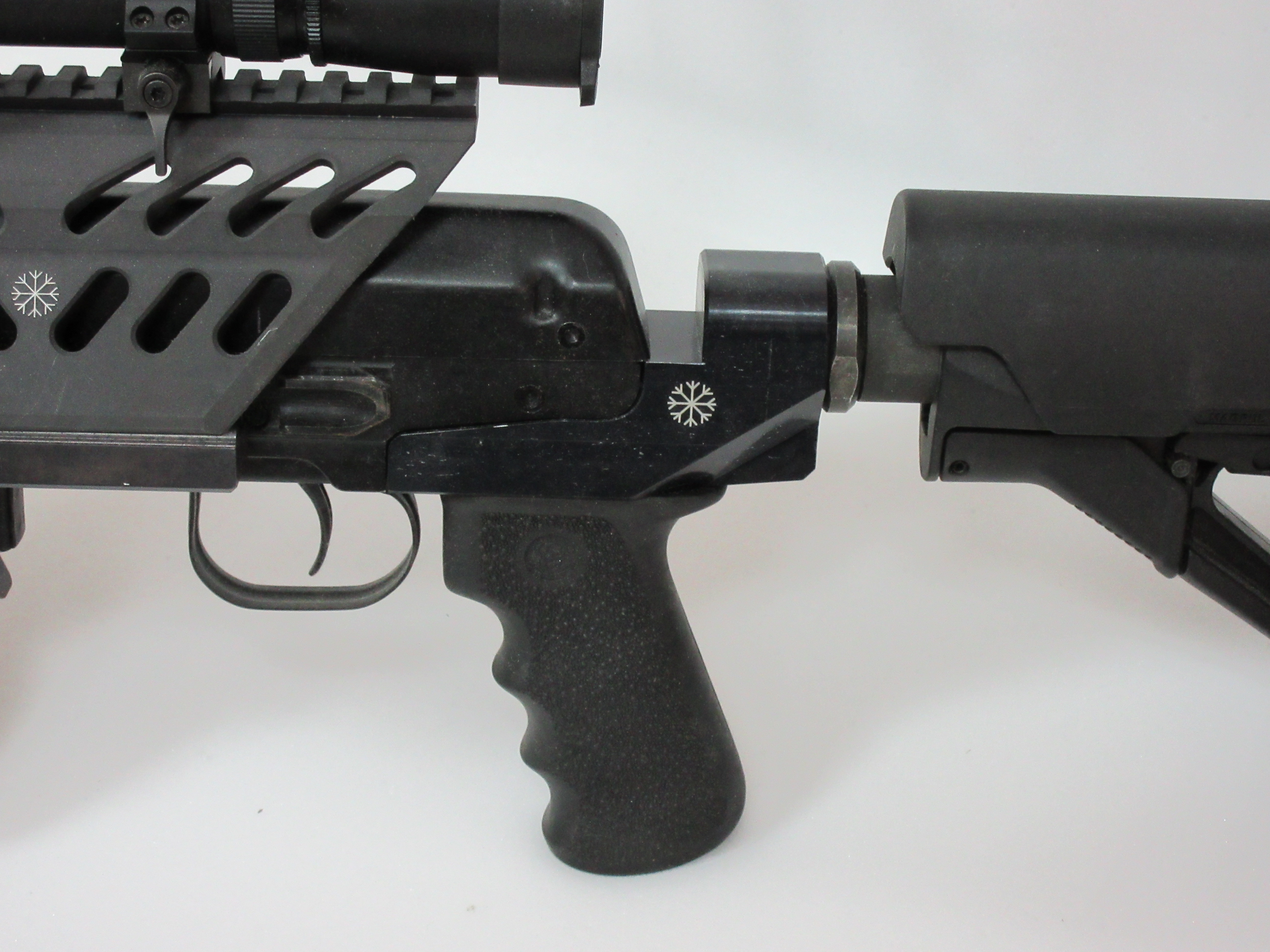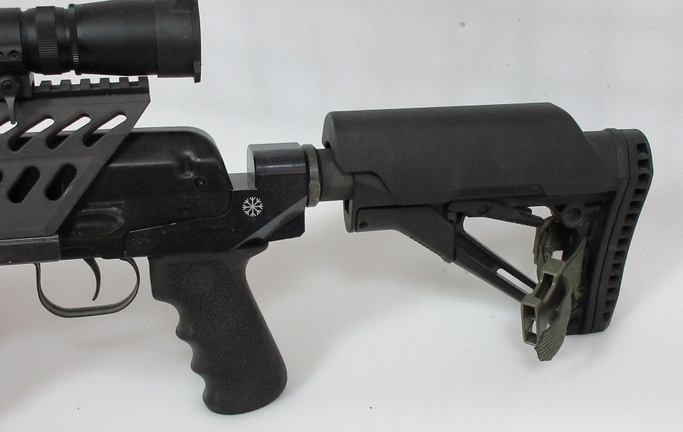 Данный вкладыш совместим с различными телескопическими прикладами М-серии. Также предусмотрена установка рукояток управления огнём АК-типа в двух положениях — расстояние между монтажными отверстиями для рукояток составляет 10 мм.