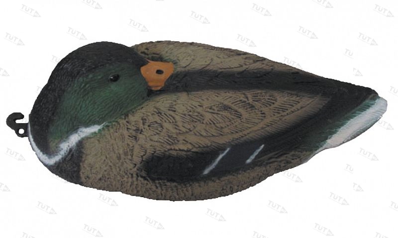Чучело Birdland кряква спящая (селезень) достаточно достоверно изготовленное чучело спящего селезня станет отличным дополнением при создании видимости целой утиной стаи. Известно, что утки и селезни редко живут в одиночку и картина утиной стаи сильно привлекает их. Спящий селезень Birdland изготовлен из цельного пластикового блока. Имеет реальный объём и размеры, соответствующие настоящей птице. Этот муляж достаточно неприхотлив в обслуживании, имеет прочное лакокрасочное покрытие, которое не боится ни воды, ни грязи, ни ультрафиолетовых лучей. Не бликует на солнце, что не позволяет живым птицам распознать приманку. Устойчив к воздействию влаги, солнечных лучей, а так же механического воздействия.
