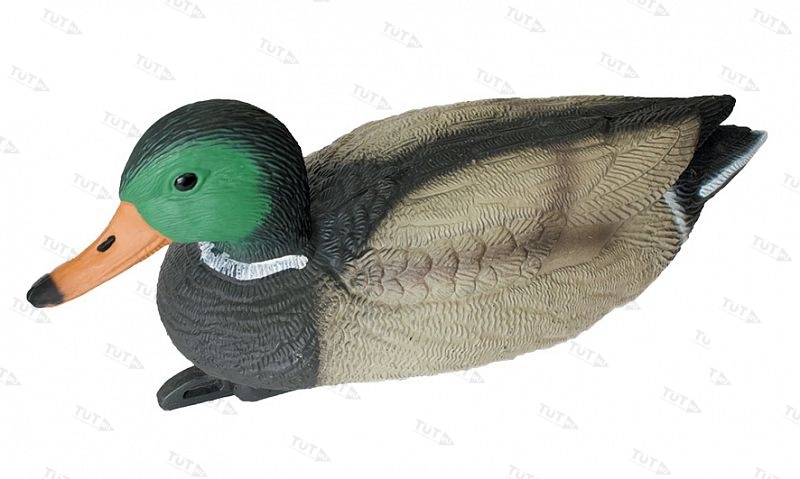 Чучело кряква плавающая, селезень. Объемная пустотелая чучалка выполнена из ударопрочного и высококачественного пластика, имеет мелкие и тщательно проработанные детали, что вызывает достаточно большое сходство с настоящей птицей. Специальное матовое покрытие не создаёт разоблачительных бликов на солнце. Покрытие устойчиво к воздействию влаги, солнечных лучей, а так же к механическим повреждениям