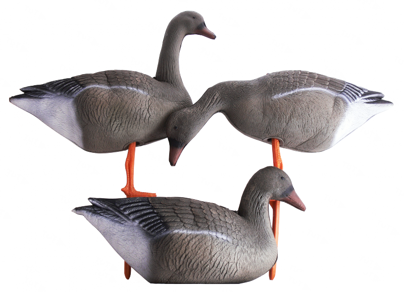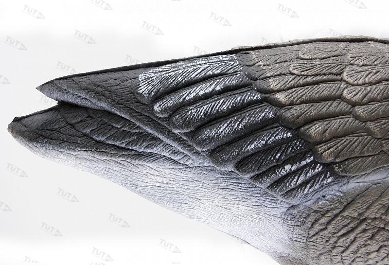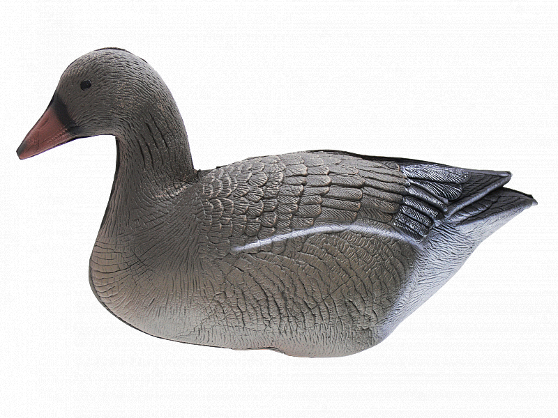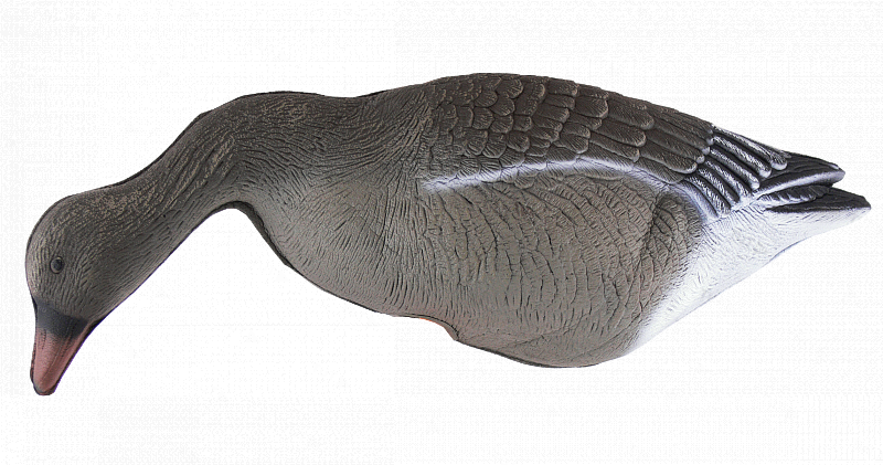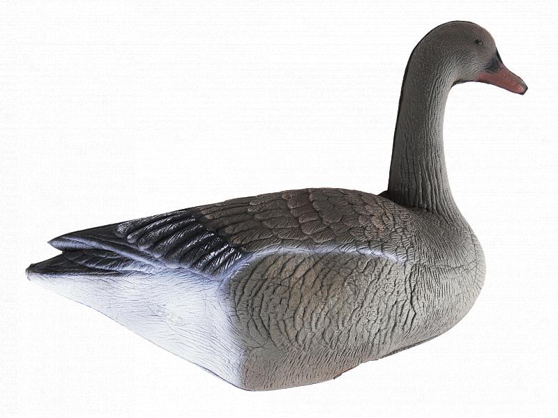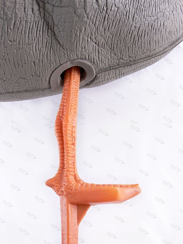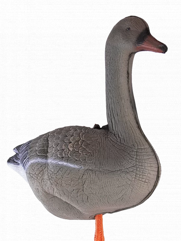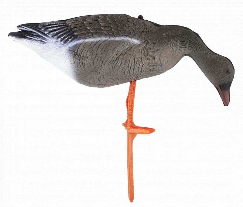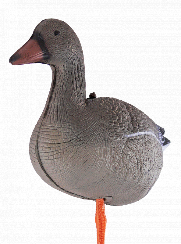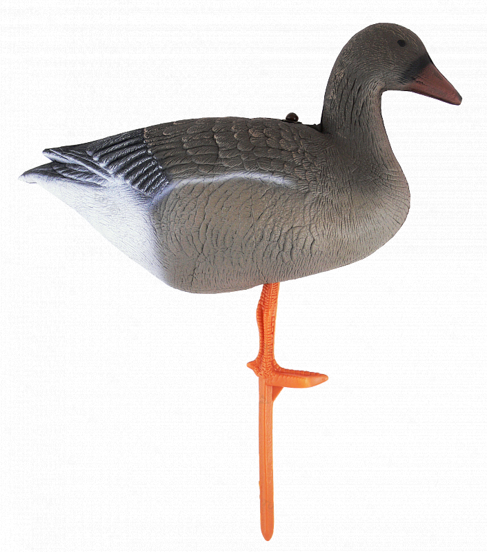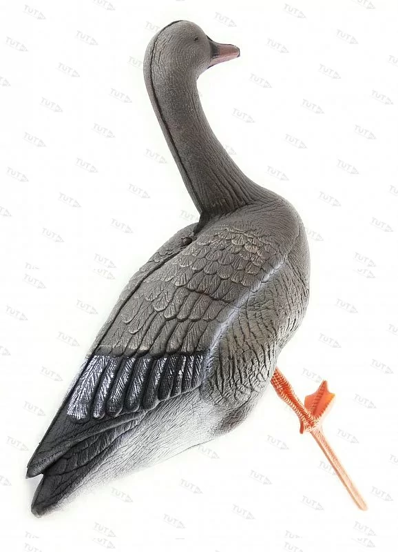 В комплекте с каждым чучелом - прочная оранжевая лапа-стойка из пластика. Чучела полнообъёмные, очень легкие, легко сминаются для транспортировки, быстро собираются, не бликуют, занимают мало места в упакованном виде. В разобранном виде принимают размеры сопоставимые с размером живого гуся. Пластиковая лапа-стойка идет в комплекте с гусем.