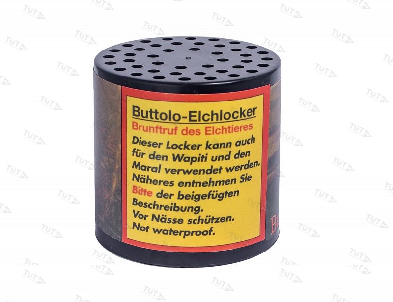 Манок на лосяHubertus Buttolo представляет собой пластиковый прибор оригинальной конструкции - коробку цилиндрической формы с одним отверстием с одной стороны и множеством отверстий с другой. При переворачивании прибора создаются довольно реалистичные звуки, которые способны привлечь лося во время гона. Закрывая отверстия можно регулировать громкость и тональность. Манок прост в использовании, но для извлечения действительно правильных звуков нужно тренироваться. Манок не очень громкий и подойдет для использования на небольших и средних расстояниях.