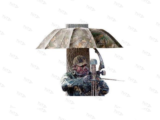 Удобно крепится на дереве и позволяет укрыть охотника от дождя/снега/шишек и прочего.