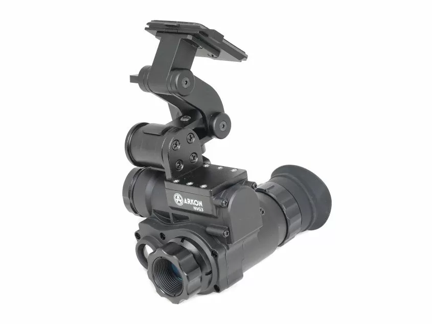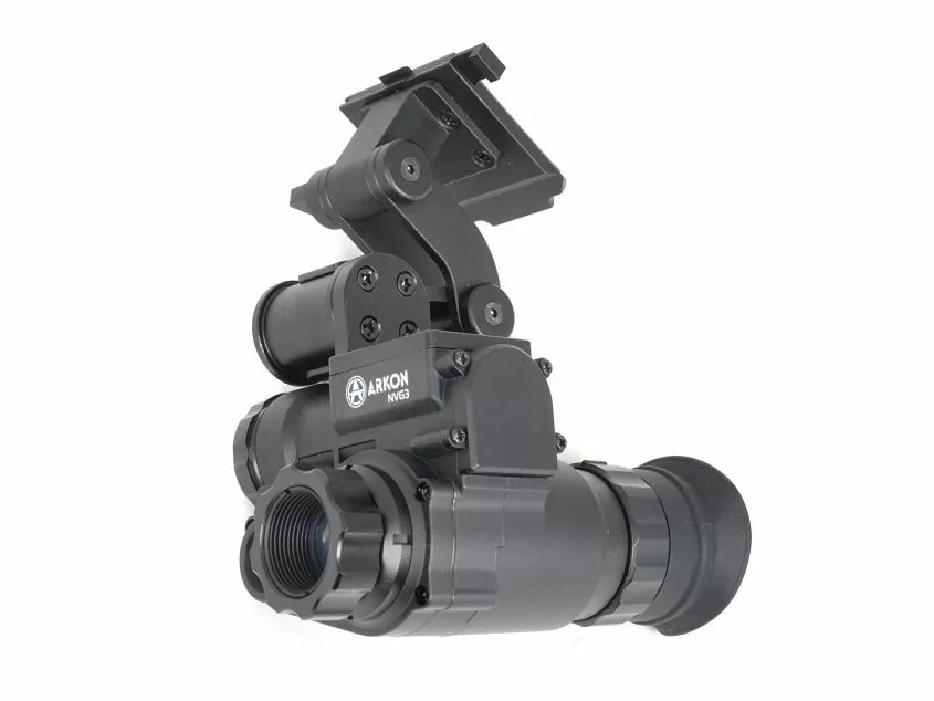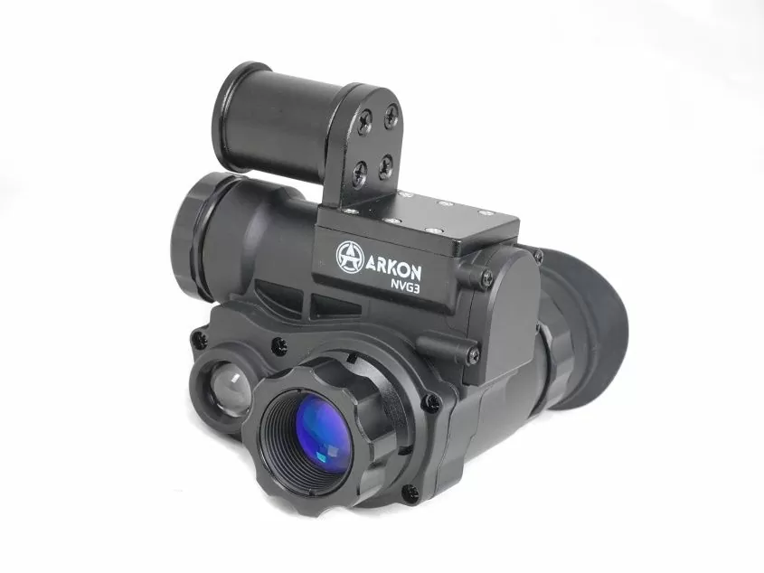 Arkon NVG3 - многофункциональный тактический монокуляр ночного видения, разработанный российским производителем Arkon Technologies. Прибор построен цифровой высокочувствительной матрице CMOS 1080P, позволяющей вести наблюдение как днем при ясном освещении, так и ночью. Благодаря универсальному исполнению прибор может использоваться как самостоятельное устройство для наблюдения или интегрироваться в тактическую экипировку с креплением на шлем, при этом руки оператора остаются свободны. В комплект поставки входит крепеж для шрауда. Заявленная дальность обнаружения в ночных условиях от 100 до 200 метров. Оптическое увеличение монокуляра 1х, также имеется функция цифрового увеличения картинки. Встроенный модуль Wi-Fi обеспечит связь и совместную работу с мобильными гаджетами, позволяя вести видеозапись происходящего. Для удобства наблюдения имеется несколько цветовых схем. Основные достоинства Arkon NVG3 - это конкурентная цена, развитая сеть сервисных центров в России и Беларуси, а также высокий уровень влагозащиты и способность работать при крайне низких температурах.