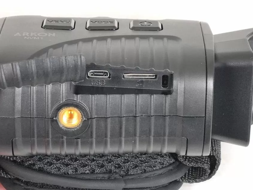 Цифровой ПНВ запитан от пяти стандартных батарей формата AA (1,5 В). Такое решение делает монокулярмаксимально универсальным. Встроенный энергосберегающий режим позволяет автоматически отключать прибор после 3, 5 или 10 минут бездействия. Дополнительно монокулярможно подключать к компьютеру через порт Micro USB 2.0 для переноса файлов и обслуживания.