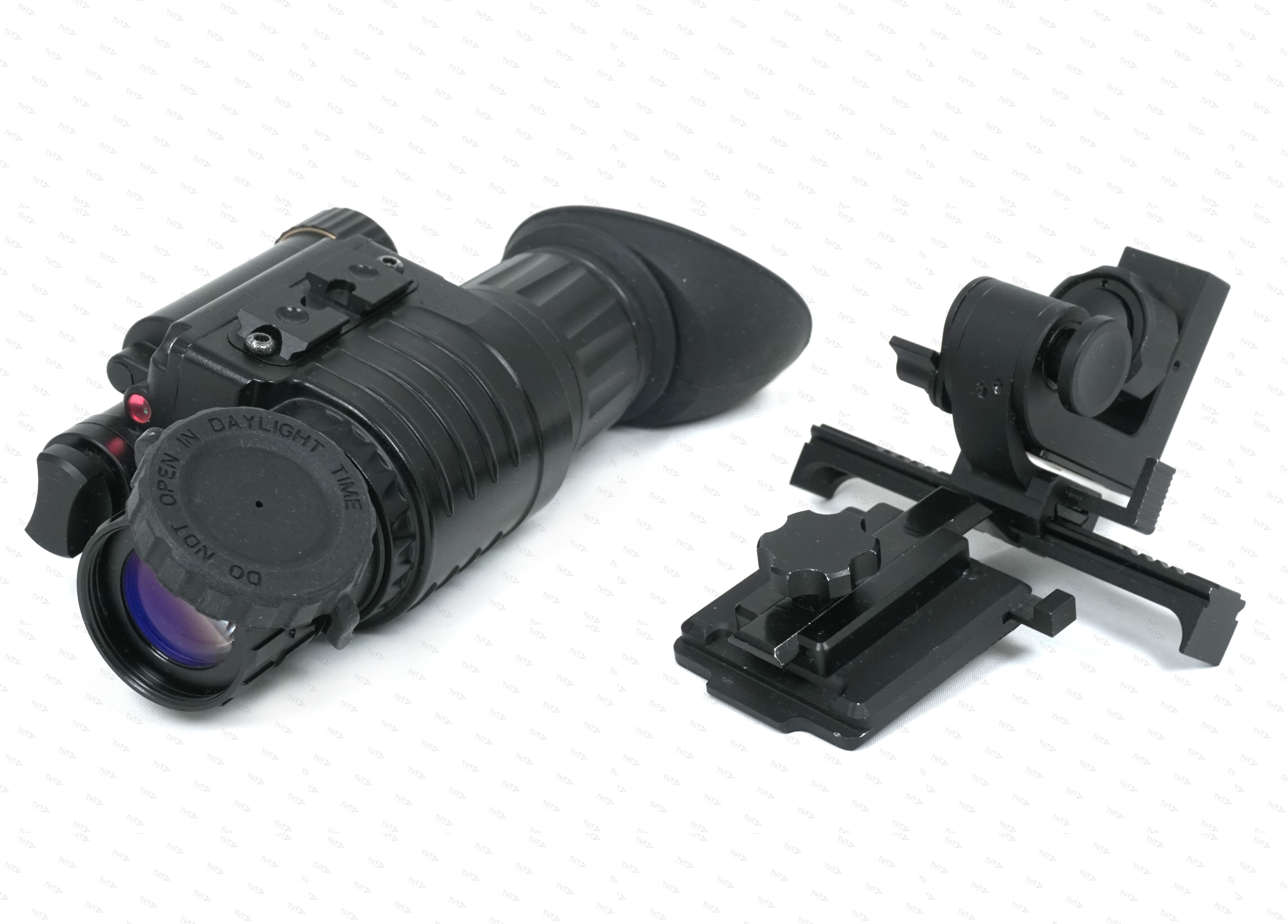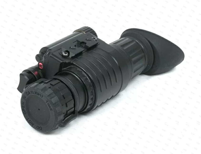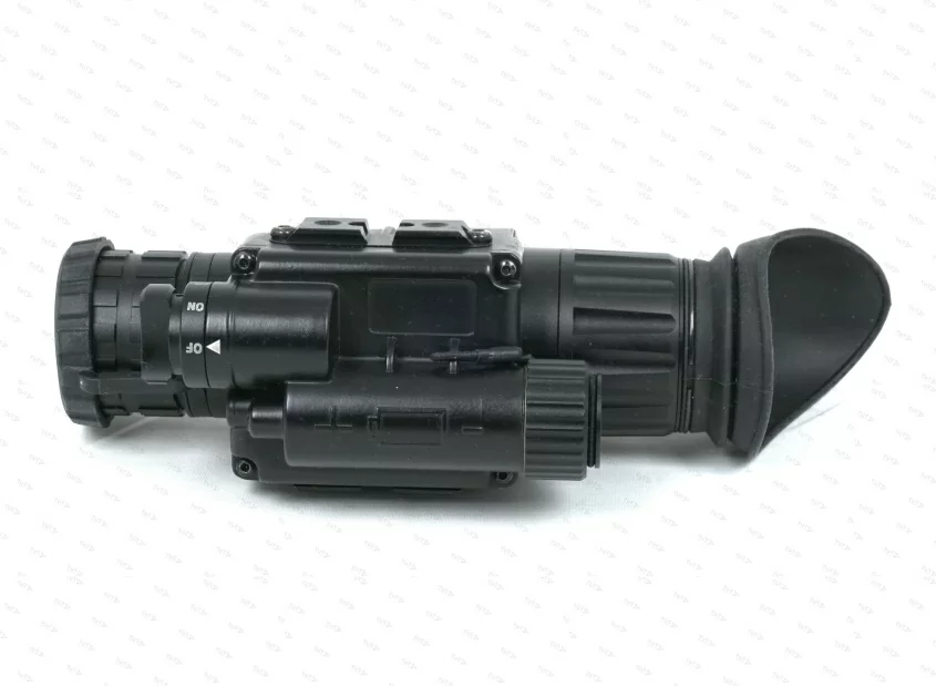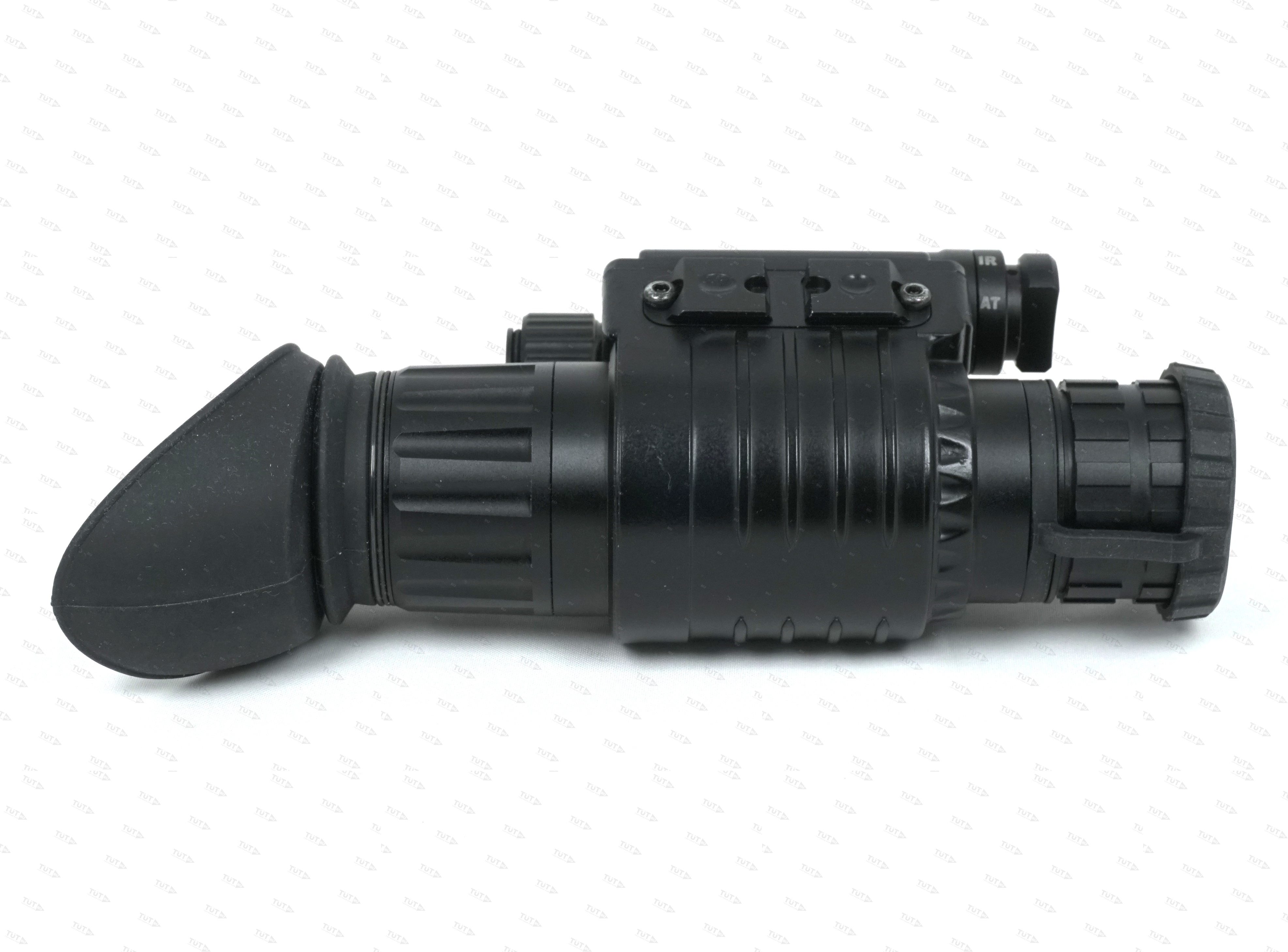 Ночной тактический монокуляр оснащен встроенным ИК-осветителем, работающим на длинах волн 850 нм. Это граница видимого спектра, при включении можно видеть небольшое свечение малинового цвета, которое уже не видно с дистанции 50 и более метров. Осветитель закрыт рассеивающей линзой помогающей снизить интенсивность таким образом, чтобы пользователям было комфортно вести наблюдения на близких дистанциях, например, знакомиться с документами, картами и пр.