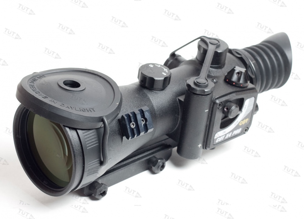 В ночном прицеле используется светосильная оптика со специальным покрытием, диаметр объектива 108 мм, а угловое поле зрения равно 9 градусов.