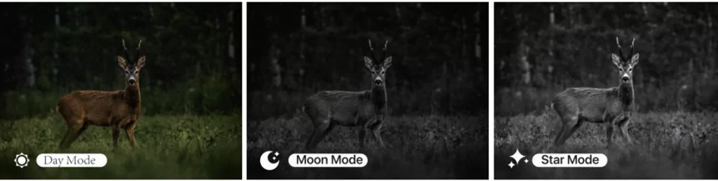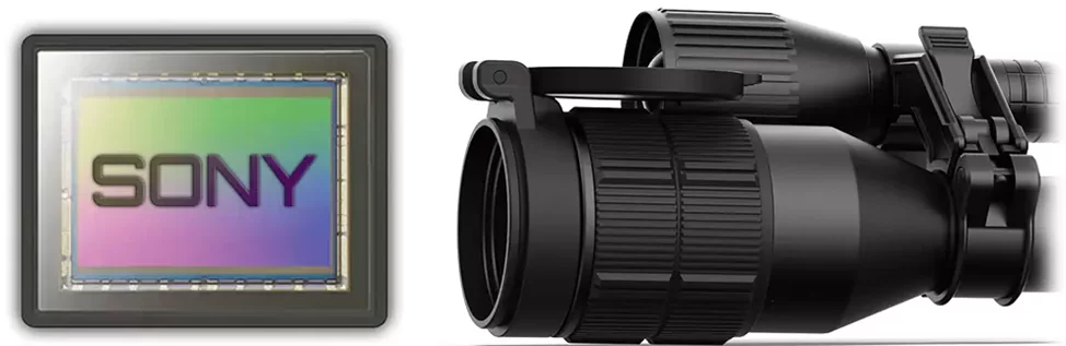В качестве чувствительного элемента, выступает высокотехнологичный 2К CMOS (Complementary Metal Oxide Semiconductor) сенсор с предельным порогом чувствительности 0,001 lux. Его возможностей достаточно для использования оптики в пассивном режиме даже в условии с крайне низким освещением. Таким образом, при хорошем лунном свете вы можете видеть на расстояние до 600 метров, при звездном небе дальность обнаружения несколько уменьшиться.