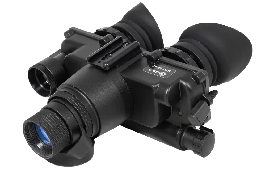 Очки ночного видения NVD G2 V2 – многофункциональное устройство разработанное российским брендом Arkon Technologies. Предприятие создано на базе группы компаний ЦЭК, много лет занимающейся передовыми разработками решений в области тепловизионного и ночного видения. Модель оснащена системой имитации бинокулярного зрения. Arkon NVD G2 V2 построены на базе электронно-оптического преобразователя (ЭОП) поколения Gen 2+, с использованием зеленого люминофора. Автоматизированное регулирование усиления и защита от сильных световых источников устраняют необходимость ручного управления. С углом обзора в 40 градусов, прибор позволяет обозревать широкую зону. Оптическое увеличение в 1х сохраняет реальные размеры объектов, что весьма полезно для визуальной оценки расстояния. Превосходство очков перед монокулярами кроется в возможности расслабить глаза и воспринимать изображение обоими глазами. Крепление на шлеме или маске дает возможность держать руки свободными, что улучшает управление оружием и способность быстро адаптироваться к меняющимся условиям. Прибор адаптирован к любым погодным условиям, защищен от влаги, способен пережить падения и неосторожное обращение. Встроенный ИК-осветитель облегчает навигацию в полной тьме и просмотр документации или картографических материалов. Для расширения рабочей дистанции можно применять дополнительный осветитель повышенной мощности.