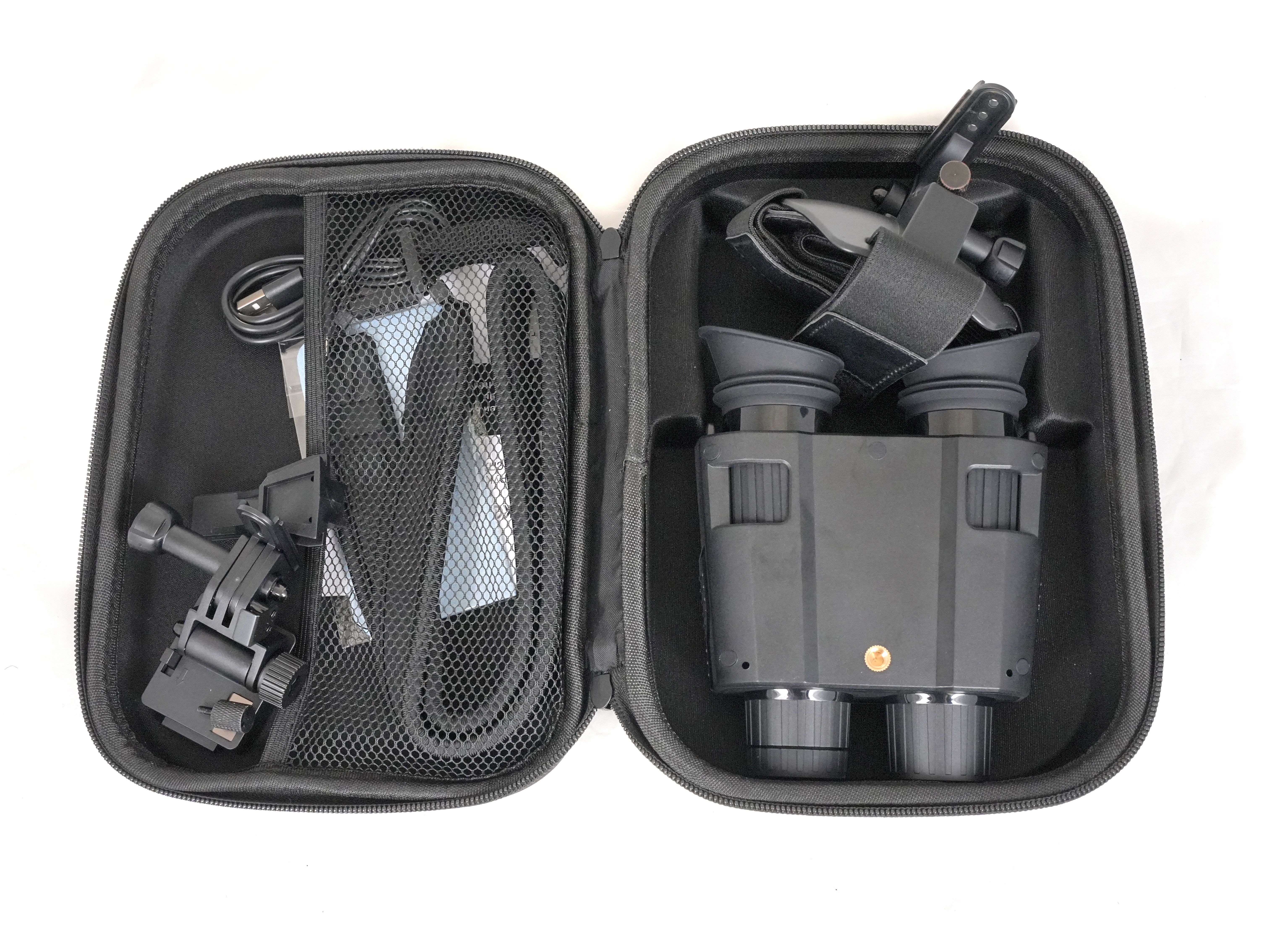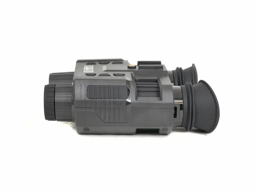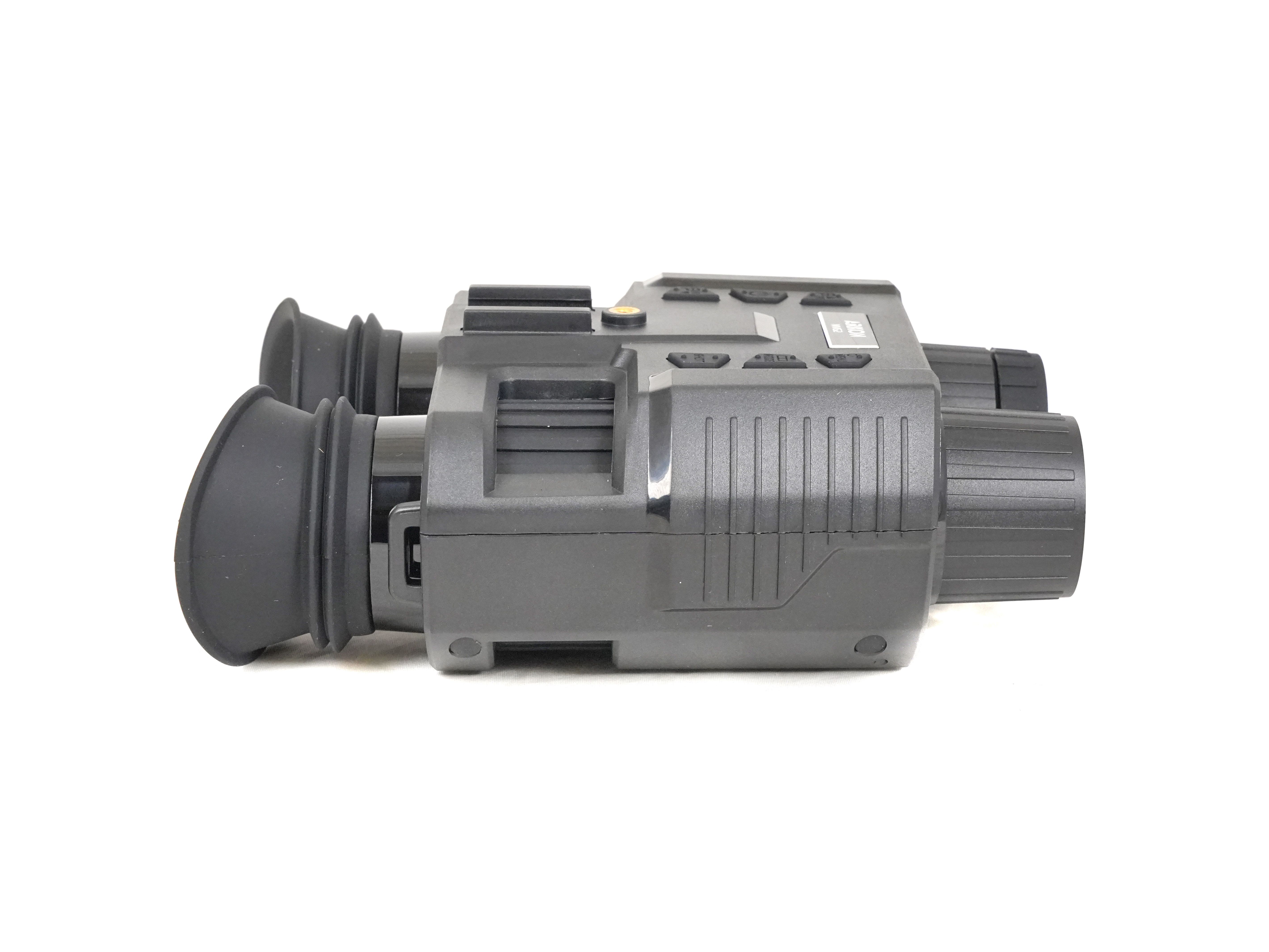 Arkon Lite NVG2 оснащен объективом 25 мм с относительным отверстием F1.4 и автоматическим ИК-фильтром, что обеспечивает четкое и детализированное изображение при любом уровне освещенности. Базовое оптическое увеличение составляет 7х, что позволяет рассматривать удаленные объекты с высокой детализацией. Цифровой зум доступен в пределах от 1х до 8х. Угол пространственного поля зрения FOV (Field ofview) равен 10°, что соответствует видимой области пространства размером полю 17,5метров на дистанции 100 м. Для индивидуальной подстройки предусмотрена независимая диоптрийная корректировка для каждого окуляра в диапазоне ±3, что делает бинокль удобным для пользователей с разными особенностями зрения.