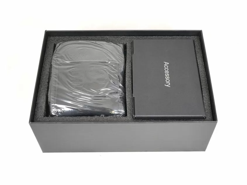 Прибор выполнен в компактном корпусе размерами 118 х 125 х 51 мм и весом всего 300 г. Несмотря на наличие двух объективов и дисплеев, конструкция остается легкой и удобной для длительного использования. Органы управления сосредоточены на верхней панели и включает кнопки зума, меню, синхронизации и переключения угла обзора. Особое внимание уделено системе энергосбережения, встроенный датчик приближения автоматически выключает дисплеи, когда прибор убирают от глаз, и включает их при приближении к лицу.