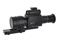 Оптический модуль включает объектив с фокусным расстоянием 50 мм и апертурой f1.0. Начальное увеличение составляет 6x, а для масштабирования изображения предусмотрена функция цифрового зума, которая позволяет увеличить картинку до 36x. Угол поля зрения при минимальном увеличении составляет 10° х 10°, что позволяет видеть пространство размером 17,5 на 17,5 метров на расстоянии 100 метров. Фокусировка объектива осуществляется путем поворота низкопрофильного кольца.ИК-осветитель и его функции