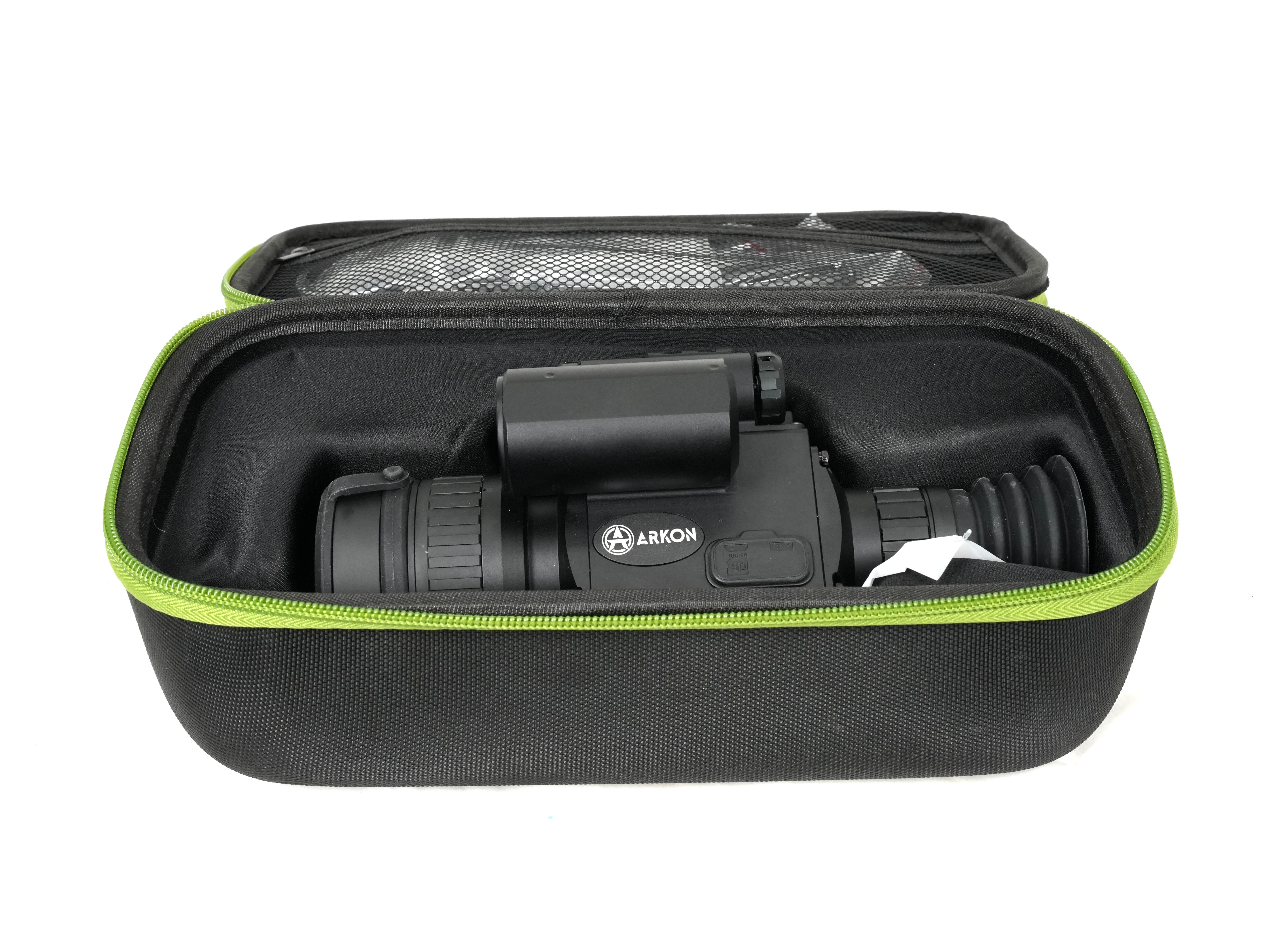 В окулярном модуле установлен современный OLED-дисплей с диагональю 0,39 дюйма, который передает четкое и цветное изображение с разрешением 1024×768 пикселей. Дисплей обладает низким энергопотреблением и устойчивостью к морозам, гарантируя стабильную работу при температуре до -30°C. Пользователи могут настроить яркость, контрастность, а также отрегулировать диоптрии в пределах ±5 дптр. Расстояние до выходного зрачка составляет 40 мм, что делает использование устройства максимально удобным даже при стрельбе крупным калибром.