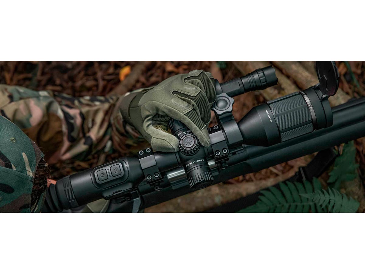 Цифровая опция PiP (Picture in Picture) вызывает появление дополнительного окна в верхней части экрана, которое представляет собой увеличенный сегмент центральной части. Оно также показывает текущую прицельную сетку, что способствует более точному прицеливанию. Размер составляет 10% от всей площади экрана, таким образом стрелок может контролировать обстановку вокруг цели.