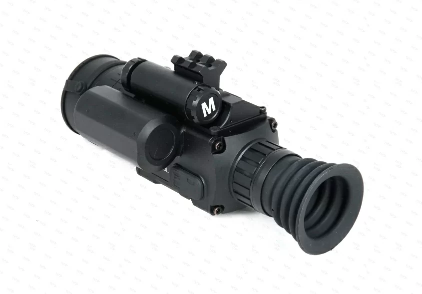 В окуляре ночного прицела расположен микродисплей с диагональю экрана 0,4 Дюйма, передающий картинку в HD качестве с разрешением 1280х720 пикселей. Пользователям доступны широкие настройки контраста и яркости изображения, а также корректировка диоптрий в пределах ±5 дптр. Выходной зрачок вынесен на расстояние 40 мм.