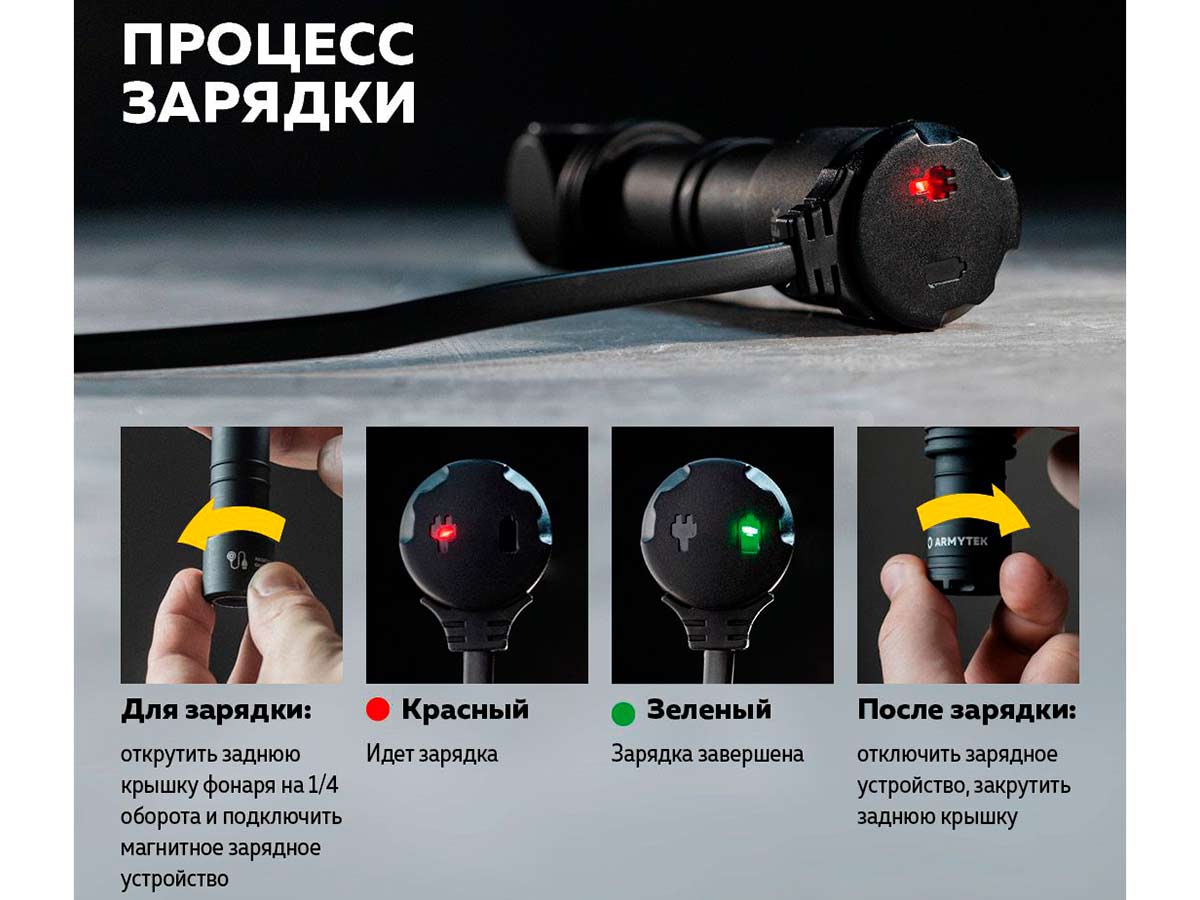 Важными преимуществами Wizard C2 Pro Max являются широкие углы света 110°:150° и еще более плавный переход между центральным пятном и боковой засветкой. В сочетании с увеличенным благодаря аккумулятору высокой емкости 21700 Li-Ion временем работы эти характеристики делают использование максимально комфортным. Быстрая магнитная зарядка USB заряжает фонарь всего за 5 часов 20 минут.