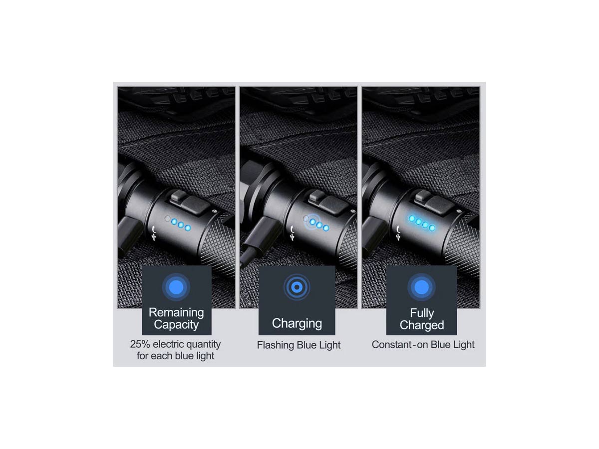 Материал корпуса: анодированный алюминий 6061-T6', 'Источник света: светодиод', 'Световой поток: 1300 люменов (яркий свет) / 350 люменов (средняя яркость) / 25 люменов (тусклый свет) / 1300 люменов (стробоскоп)', 'Длина луча фонаря: 280 метров / 140 метров / 35 метров', 'Питание: 1 аккумулятор 18650 (2600 mAh)', 'Работа от 1 комплекта питания: 2 часа (яркий свет) / 4 часа 30 минут (средняя яркость) / 60 часов (тусклый свет)', 'Зарядка посредством usb-c', 'Габариты: длина — 15см, диаметр головы — 3.5см, диаметр корпуса — 2.85см', 'Масса: 177гр', 'Защищенность: IPX7 (падение с высоты 2 метра, водостойкость 1 метр)'