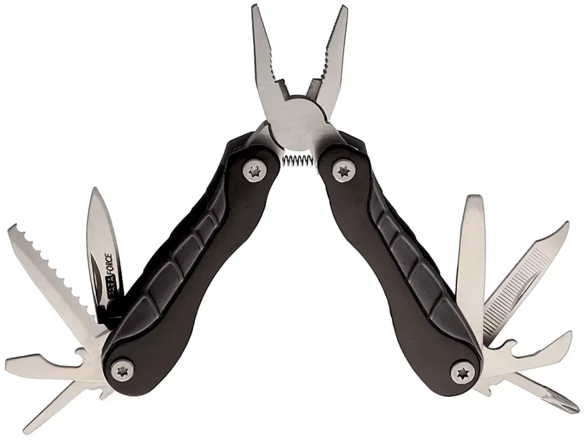 Мультиинструмент компактный AccuSharp ParaForce 13 инструментов, чёрныйКомпактный мультиинструмент или мультитул (Multi-Tool) AccuSharp ParaForce объединяет в себе 13 различных инструментов. Этот удобный многофункциональный инструмент готов прийти вам на помощь в любой момент. Он отлично подходит для работы как дома, так и на открытом воздухе.Если вы любитель активного отдыха, компактный мультиинструмент ParaForce это универсальный инструмент, который всегда нужно иметь при себе во время рыбалки, охоты, кемпинга и пеших походов. Ведь с его помощью можно решать различные задачи, от закручивания винтов и перекусывания проволоки до открывания бутылок. Все инструменты легко извлекаются из рукояток.Этот многофункциональный инструмент с пружинящими плоскогубцами изготовлен из анодированного алюминия и нержавеющей стали. Имеет пластиковые рифлёные накладки эргономичной формы для удобства захвата.AccuSharp ParaForce легко использовать и переносить. Когда мультиинструмент не используется, его можно убрать в карман или в прочный нейлоновый чехол цвета, входящий в комплект. Для удобства транспортировки и хранения чехол имеет петлю для ремня.Инструменты:ОстрогубцыПлоскогубцыКусачки для проволокиНожОткрывашка для бутылокКрестообразная отверткаНож с серрейторным лезвиемКонсервный ножИнструмент для чистки ногтейДвухстороняя пилка для ногтейМаленькая отвёртка с плоским шлицемСредняя отвёртка с плоским шлицемБольшая отвёртка с плоским шлицемХарактеристики:Материалы: нержавеющая сталь, алюминий, пластикДлина в сложенном состоянии: 7смДлина в разложенном состоянии: 10,8смЦвет накладок: чёрныйМасса: 100г