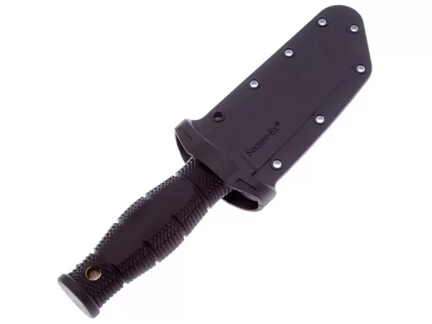 Нож Cold Steel Mini Leatherneck Tanto, 8Cr13MoV, Kray-ExCold Steel Mini Leatherneck Tanto — миниатюрный нож-шейник, который всегда с собой. Длина этого ножа всего 17 сантиметров, но при этом он надежен и функционален. Клинок нержавеющей стали обладает отличный резом и уколом, монтаж клинка — сквозной, рифленая рукоять Kray-Ex надежно лежит даже в мокрой руке. Широкая гарда защищает пальцы от соскальзывания на острое лезвие при работе.Клинок изготовлен из 8Cr13MoV — неплохой вариант как для повседневных ножей, так и для ножей, предназначенных для выживания. Данная сталь не выдает сверхъестественных показателей, но за свою цену обладает весьма недурными характеристиками. Она хорошо сопротивляется коррозии, демонстрирует неплохую износостойкость и рез, но все же уступает по этим показателям более дорогим сплавам.Рукоять выполнена из Kray-Ex (кратона) — этот материал аналог резины, но превосходит ее по показателям термо- и износостойкости. Несколько «липковатая» поверхность обеспечивает уверенный хват.Характеристики Cold Steel Mini Leatherneck Tanto:Длина общая: 171 ммДлина клинка: 89 ммТолщина обуха: 3 ммСталь клинка: 8Cr13MoVМатериал рукояти: Kray-ExМасса: 93г