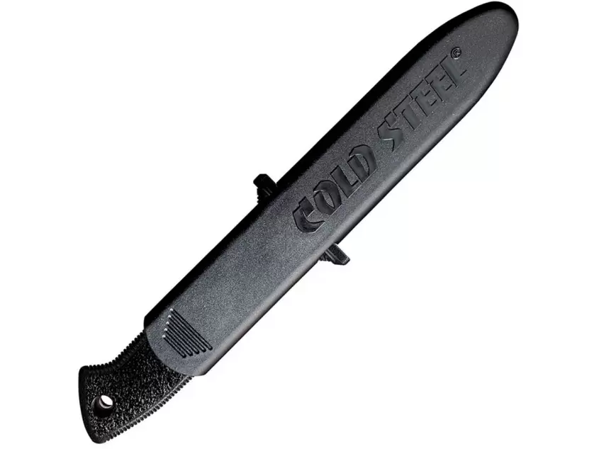Нож Cold Steel Peace Maker III, 1.4116, Kray-Ex (прорезиненный пластик)Нож Cold Steel Peace Maker III – универсальный нож с фиксированным клинком от Cold Steel. Модель оснащена удобной, ухватистой рукоятью из прорезиненного пластика. Комплектуется ножнами с поясным подвесом.Клинок выполнен из немецкой нержавеющей стали 1.4116. Она используется в производстве хирургических инструментов. Стойкость режущей кромки в тестах на разрезание превысила аналогичные характеристики клинков изготовленных из нержавеющих сталей 420 и 440 серий.Рукоять выполнена из популярного ударостойкого материала — прорезиненного пластика. Это недорогой, но достаточно прочный материал. Он устойчив к различным внешним воздействиям, не боится истирания, хорошо себя чувствует при низких температурах. Безопасная форма рукояти предотвратит случайный срыв на режущую кромку.Характеристики Cold Steel Peace Maker III:Общая длина: 213 ммДлина клинка: 101 ммДлина рукояти: 112 ммТолщина обуха: 2,5 ммМатериал клинка: 1.4116 KruppМатериал рукояти: Kray-Ex (прорезиненный пластик)Масса: 91г