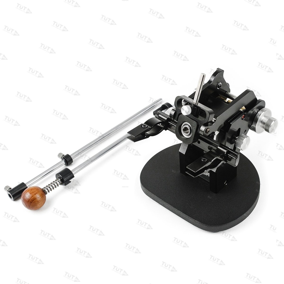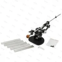 Blitz Pro оснащен поворотным механизмом Flip-n-Sharp, который позволяет затачивать нож, не вынимая его из зажимов. Уникальная особенность устройства - система V.C. Angleset. Выставление угла на Blitz происходит за счет движения ножа относительно виртуального центра. Что дает дополнительный комфорт при заточке и уменьшает воздействие абразива на режущую кромку.