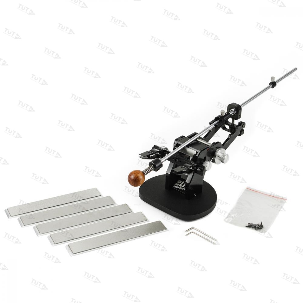 Blitz Pro комплектуется цельнофрезерованными алюминиевыми зажимами, которые выполнены из высокопрочного авиационного алюминия c анодированием черного цвета. Зажимы перемещаются по всей длине рамки одним движением и позволяют максимально точно позиционировать нож. Благодаря монолитной конструкции зажимов, они обладают повышенным сопротивлением давлению на абразив, обеспечивая тем самым постоянство углов на всех этапах работы, начиная от обдирки заканчивая финишной доводкой. Зажимы не требуют калибровки и подгонки под клинки с разной геометрией. Они дают возможность заточить кухонные ножи, складные ножи, охотничьи ножи, ножи мультитула с толщиной обуха до 4,5 мм. Длина рамки в 105 мм, позволяет затачивать нож с длиной клинка до 280 мм. Зажимы регулируются L-образным ключом 2,5 мм.