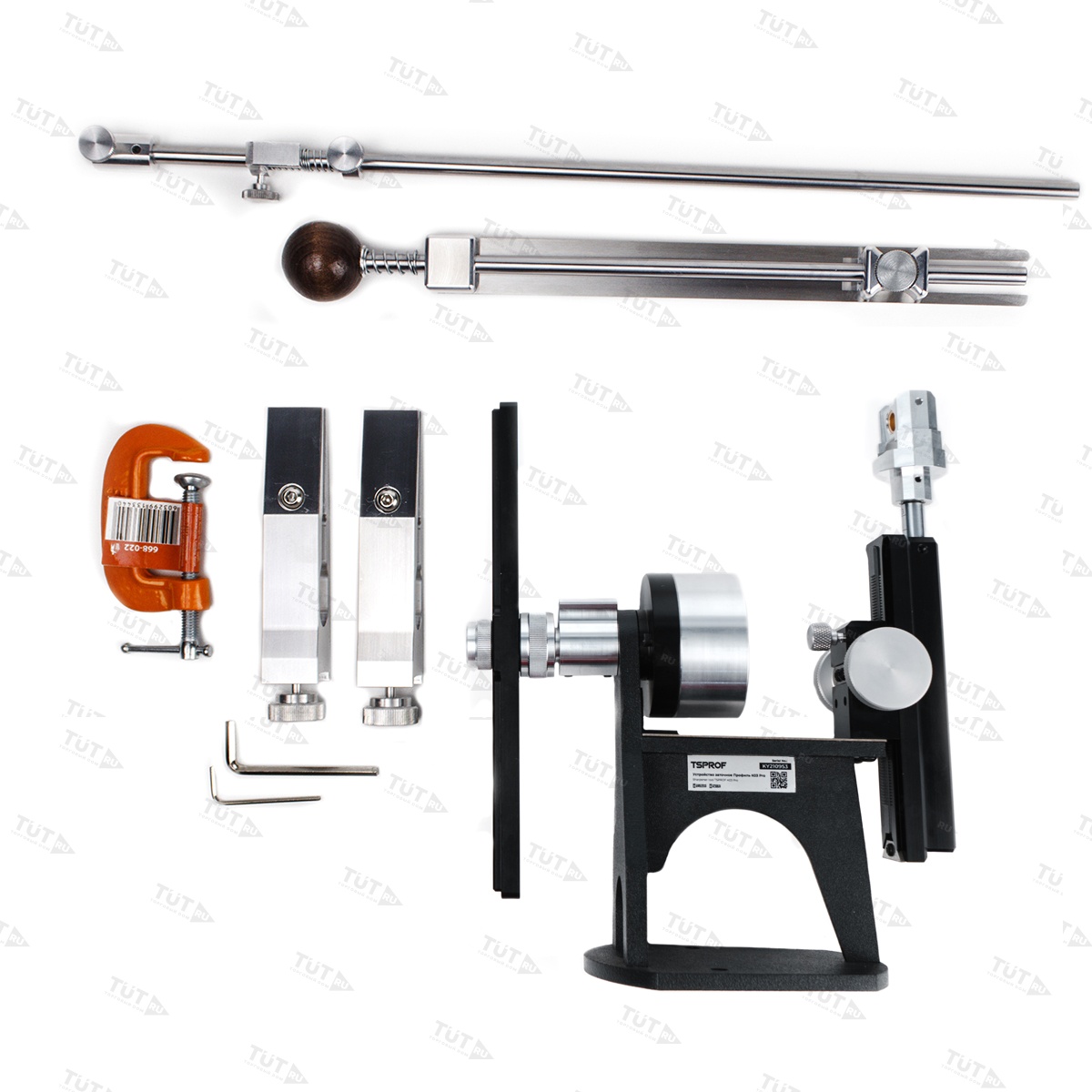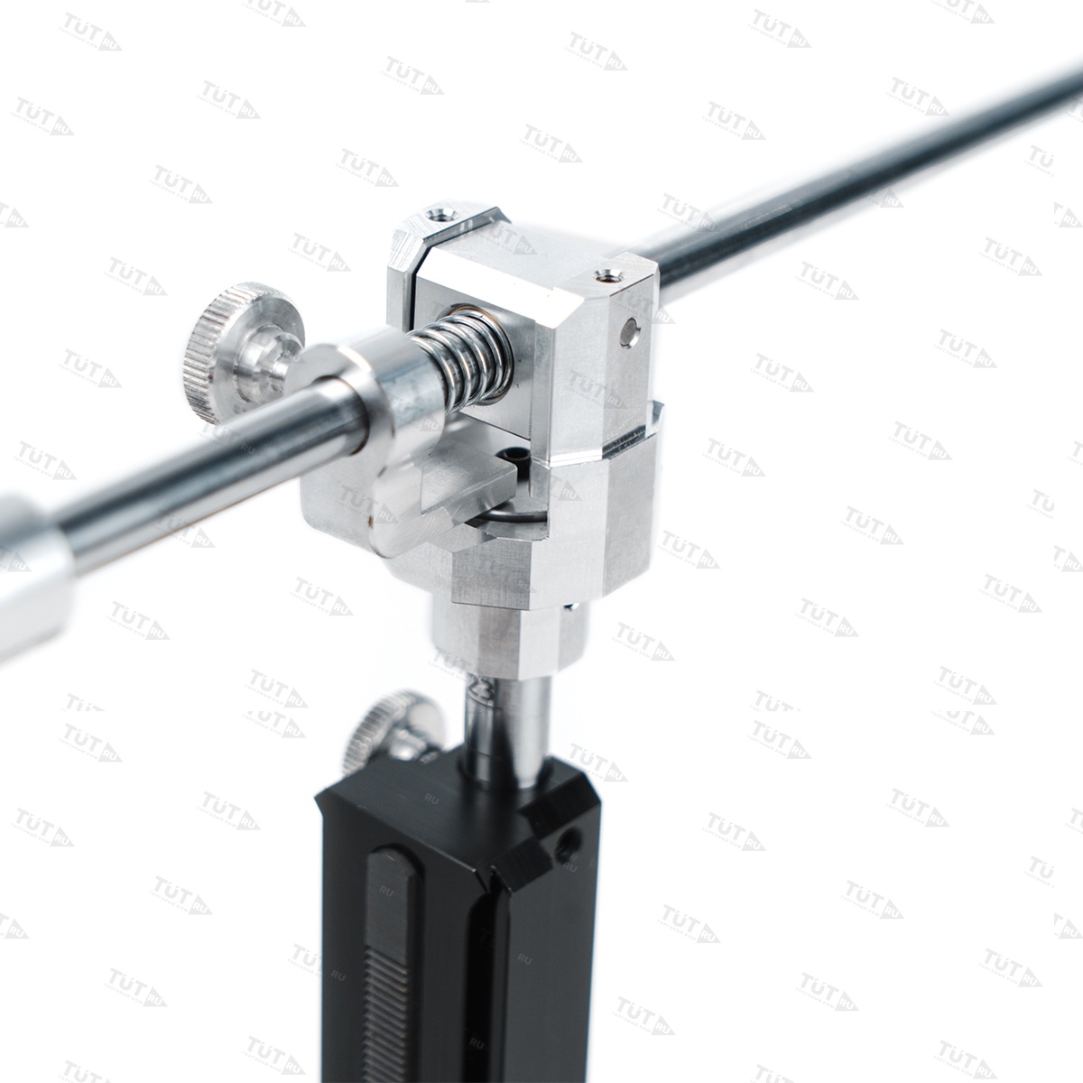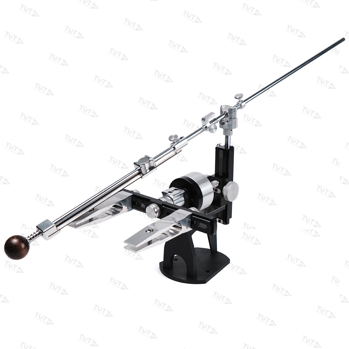 Универсальный держатель позволят использовать с точилкой любые абразивные камни как на бланках, так и без бланков. Штанга держателя абразива имеет увеличенную длину в 694 мм, выполнена из стали и обладает высокой жесткостью. Штанга держателя — разборная и соединяется алюминиевой втулкой-муфтой, с посадочным креплением «на три точки», что дает максимальную соосность соединения. Для регулировки штанга оснащена удобным винтом-барашком, соединение штанги происходит одним движением. Оснащена стальной подложкой.