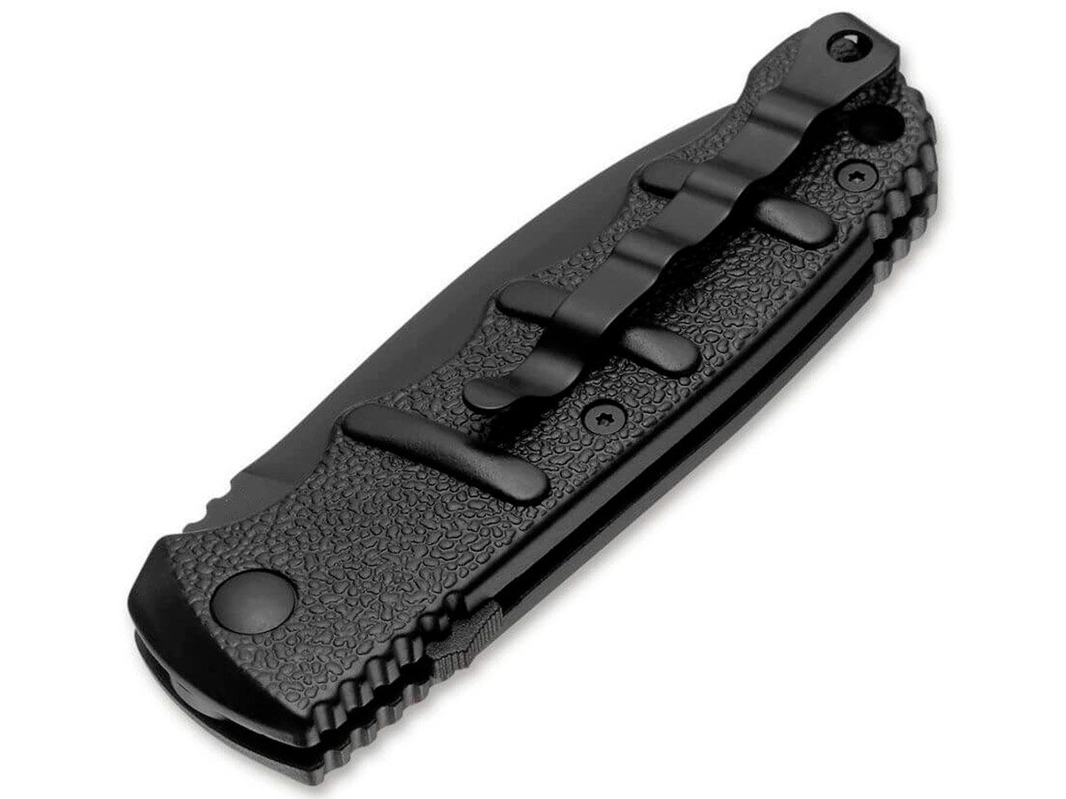 Нож складной Boker Plus AKS47 SpearpointСкладной нож Boker Plus AKS47 Spearpoint из серии «Калашников» посвящен одноименному автомату. Его чёрная алюминиевая рукоятка стилизована под штык-нож. Благодаря подпальцевым выемкам нож удобно лежит в руке. А рельеф рукоятки обеспечивает удобный хват.Клинок изготовлен из стали AUS-8, которая обладает прочностью, коррозионной стойкостью и при этом легко затачивается. Ножи из стального сплава этой марки могут долго сохранять остроту заточки.Открыть нож можно нажатием на кнопку — после этого клинок автоматически раскрывается. На ручке имеется предохранитель, который защитит от случайного нажатия на кнопку. После использования нож складывается пользователем вручную.На рукоятке установлена клипса с глубокой посадкой для крепления ножа к карману. Также есть темлячное отверстие.Особенности ножа Boker Plus AKS47 Spearpoint:Материал клинка: сталь AUS-8Материал рукоятки: анодированный алюминийЗамок: Button-LockМасса: 106 гДлина клинка: 85 ммДлина ножа в раскрытом состоянии: 195 ммЦвет клинка и рукоятки: чёрныйАвтоматическое извлечение клинкаКлипса глубокой посадкиПредохранительТемлячное отверстие
